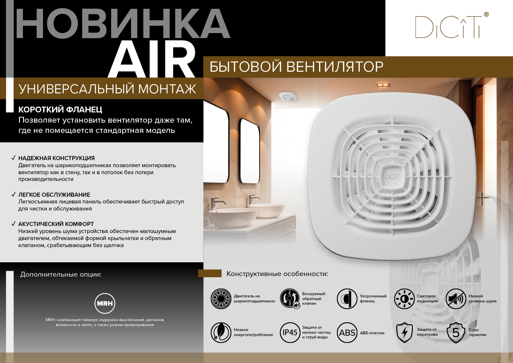 Бытовой вентилятор AIRКороткий фланец, надежная конструкция, легкое обслуживание