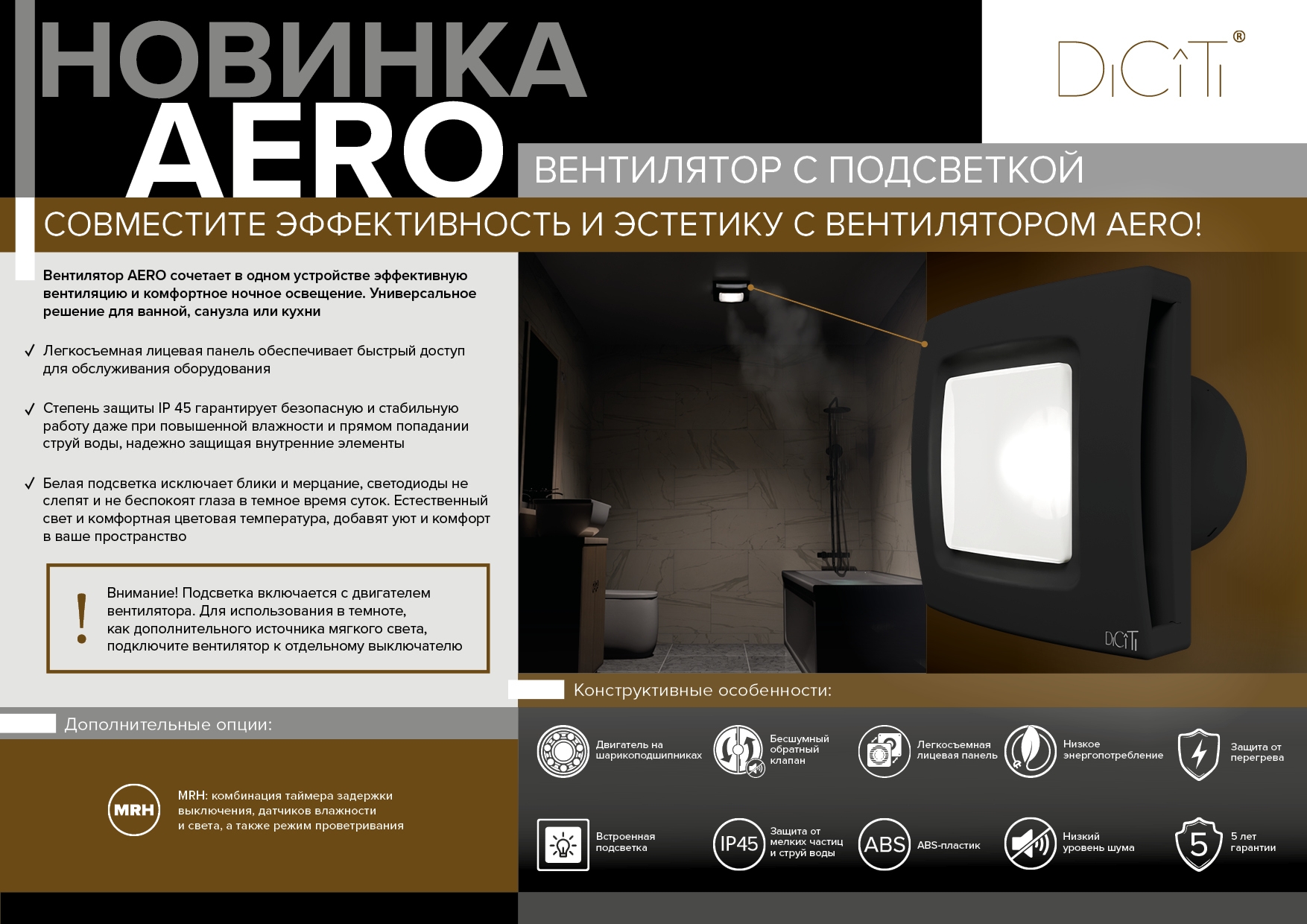 Бытовой вентилятор AERO с подсветкойЭффективная вентиляция и комфортное ночное освещение в четырех матовых цветах