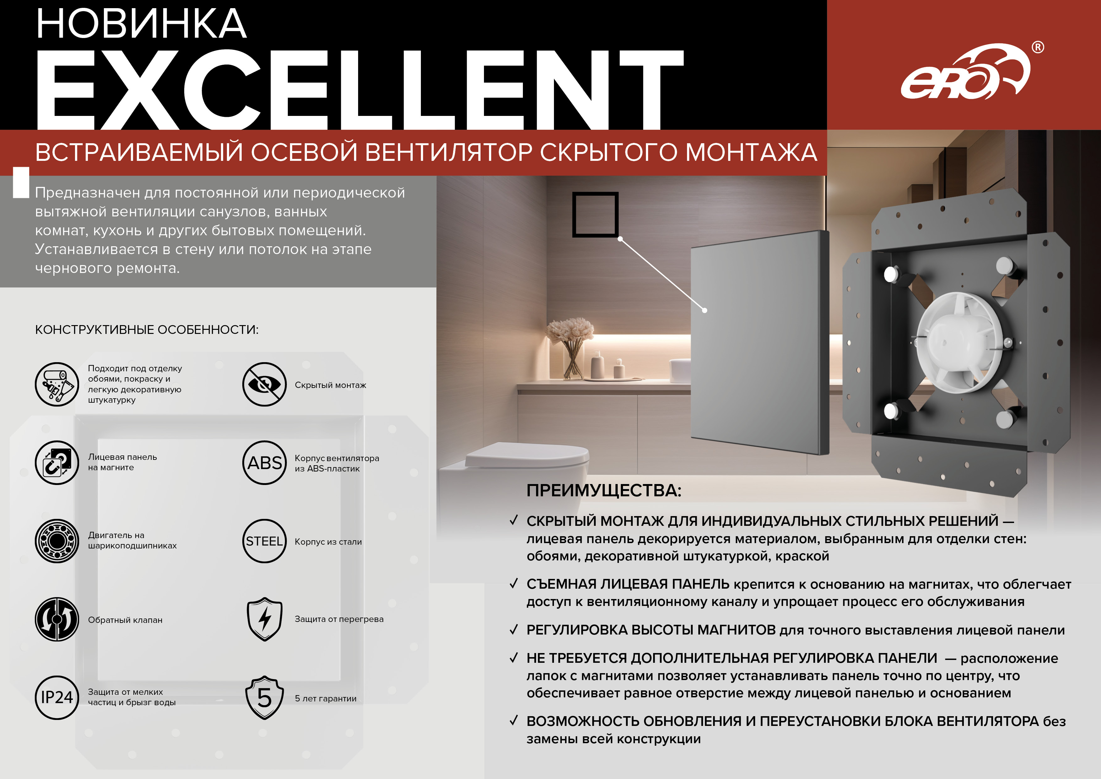 EXCELLENT — Встраиваемый осевой вентилятор скрытого монтажаПодходят для вентиляционных каналов диаметром 100 и 125 мм.