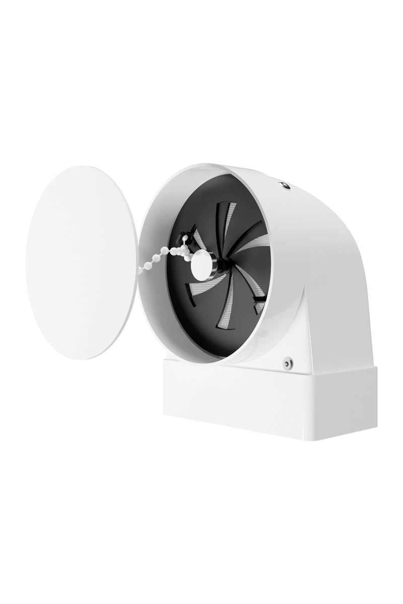 Металлическая заслонка позволяет регулировать объем воздуха, в том числе полностью перекрыть поток. Антимоскитная сетка защищает помещение от проникновения насекомых и грязи из вентиляционного канала.