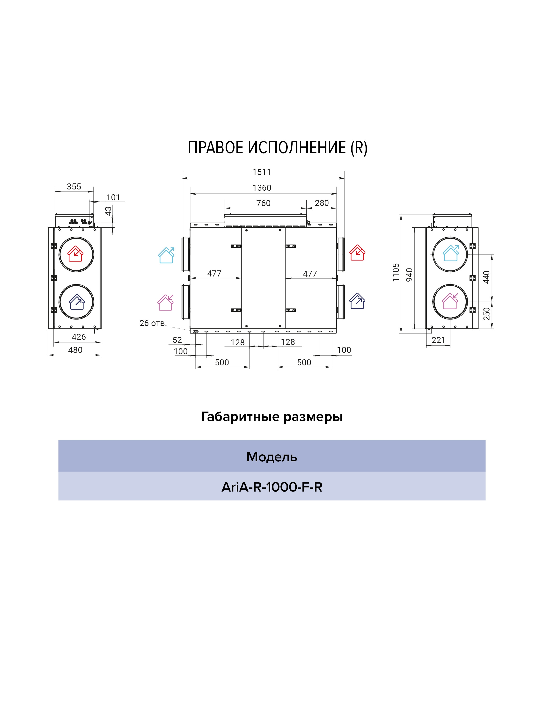 — Установка укомплектована роторным рекуператором: в моделях ARIA-R-300-F установлен один, в остальных (с модели ARIA-R-500-F) — два рекуператора.