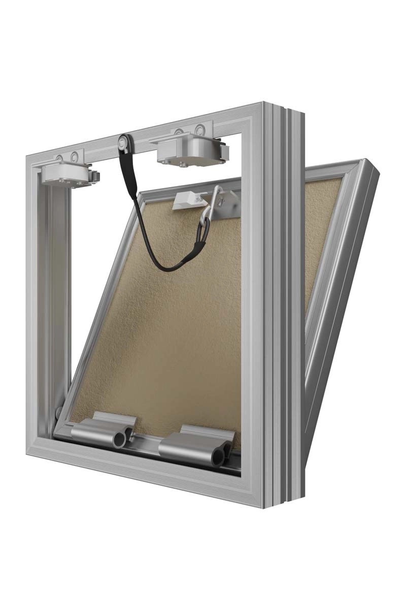 В случае пластиковых люков с фланцем возможно снятие дверцы для удобства монтажа или ревизии.