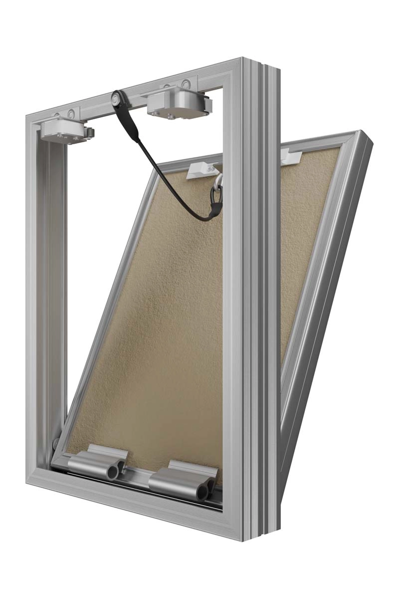 В случае пластиковых люков с фланцем возможно снятие дверцы для удобства монтажа или ревизии.
