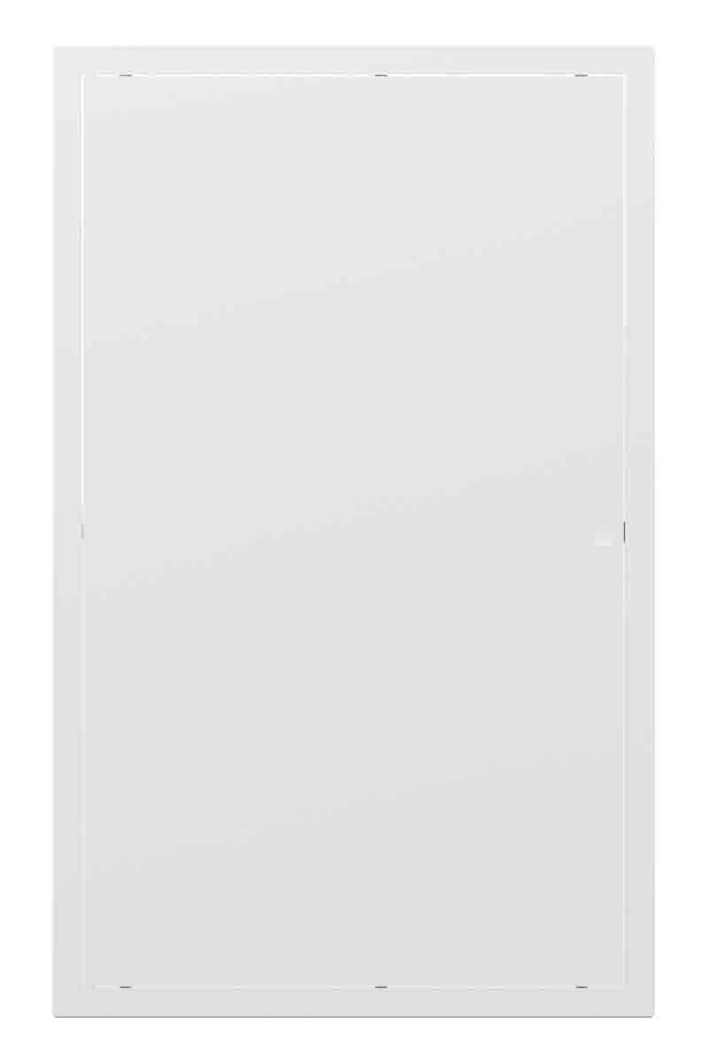 Смотрите карточку товара в разделе «Характеристики». Там указаны габариты рамки (Ш×В) — сколько закроет люк по стене или потолку.
