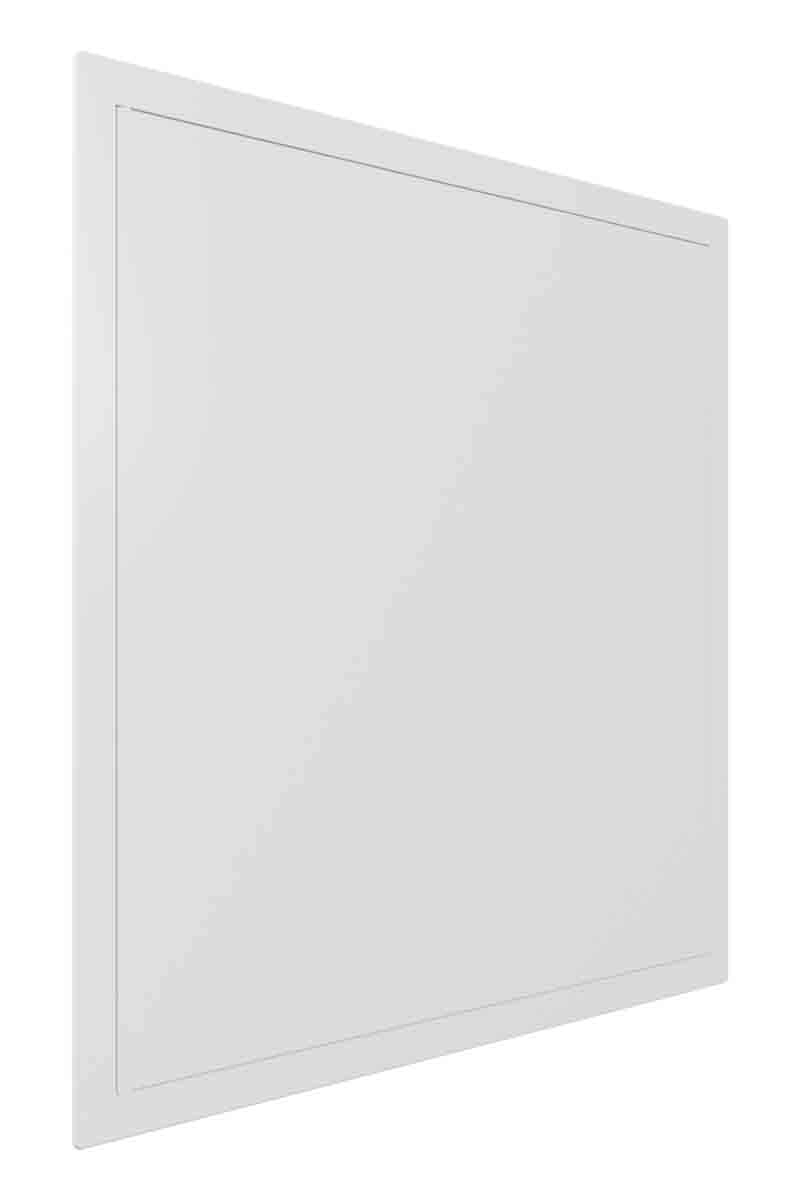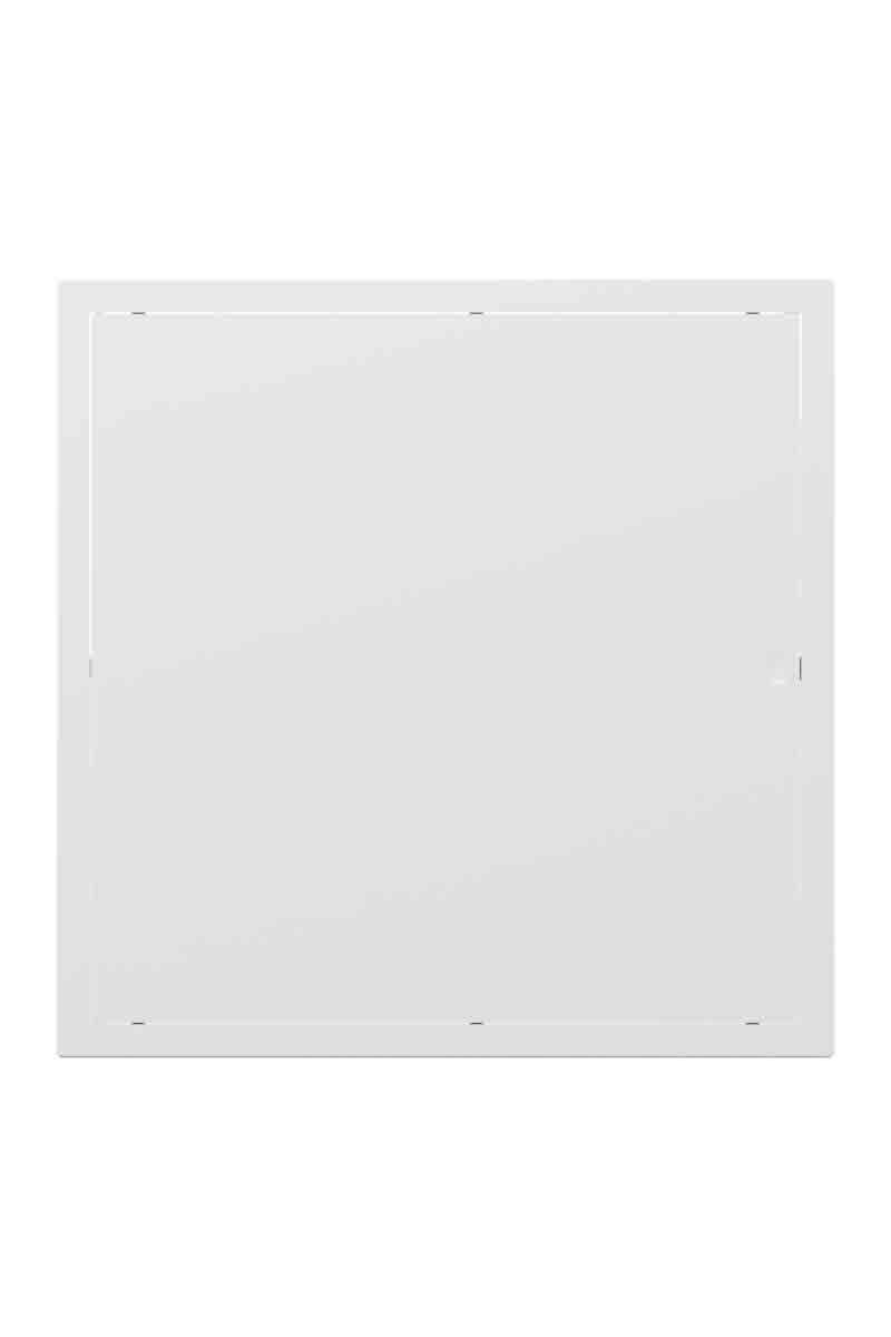 Смотрите карточку товара в разделе «Характеристики». Там указаны габариты рамки (Ш×В) — сколько закроет люк по стене или потолку.