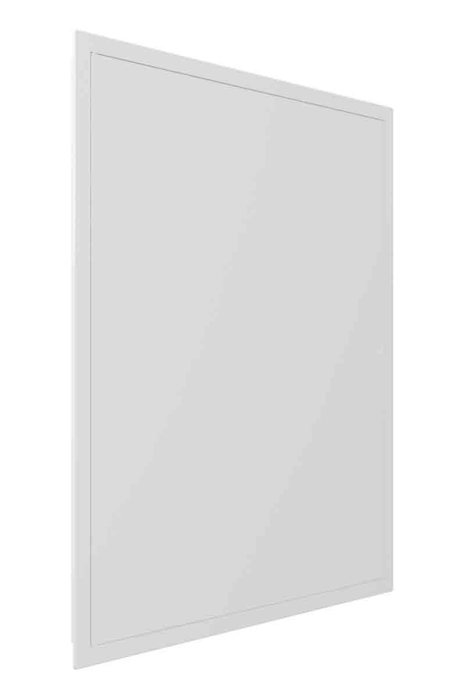 Смотрите карточку товара в разделе «Характеристики». Там указаны габариты рамки (Ш×В) — сколько закроет люк по стене или потолку.
