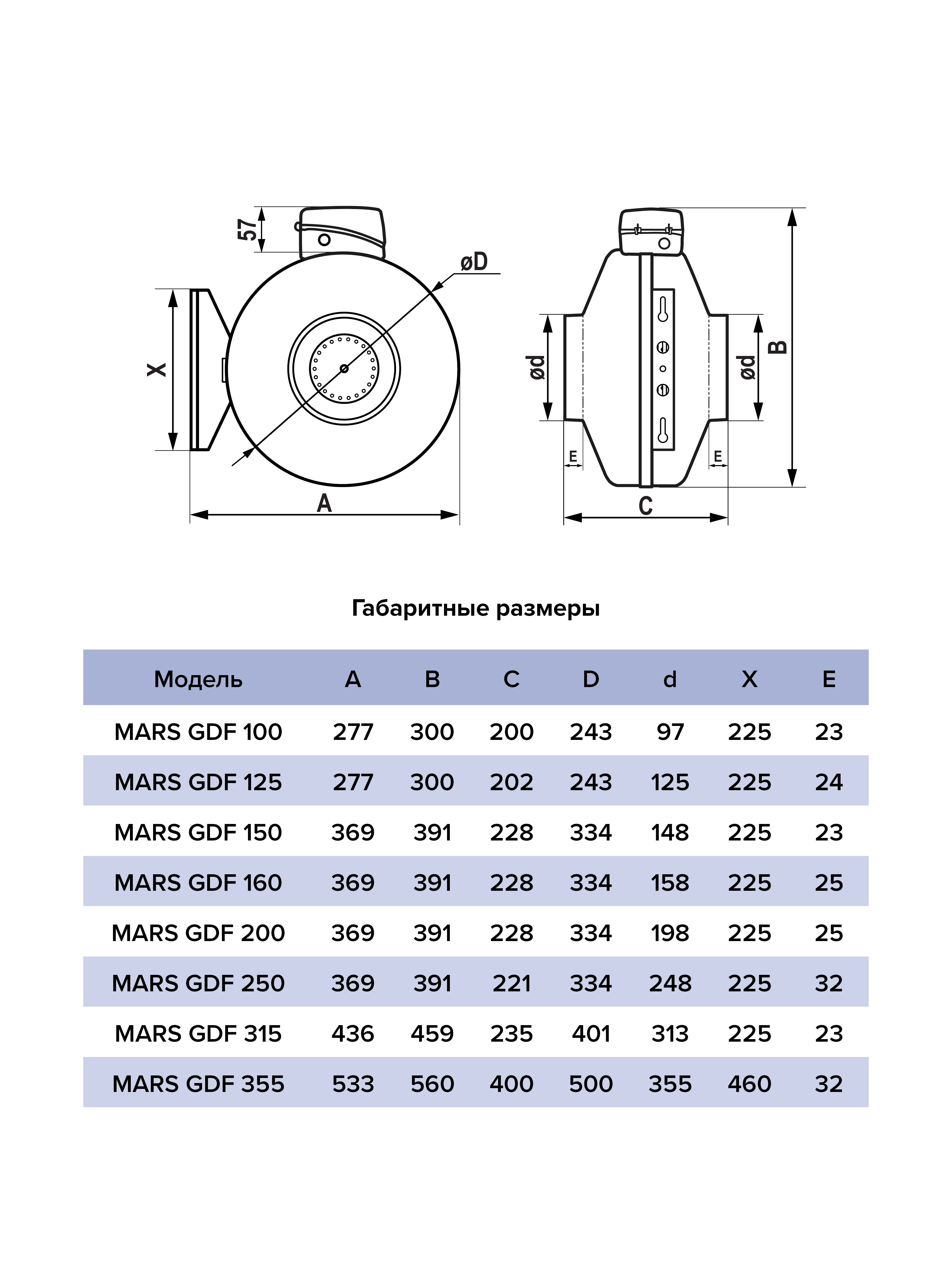 Вентилятор канальный MARS D160 центробежный GDF ERA PRO