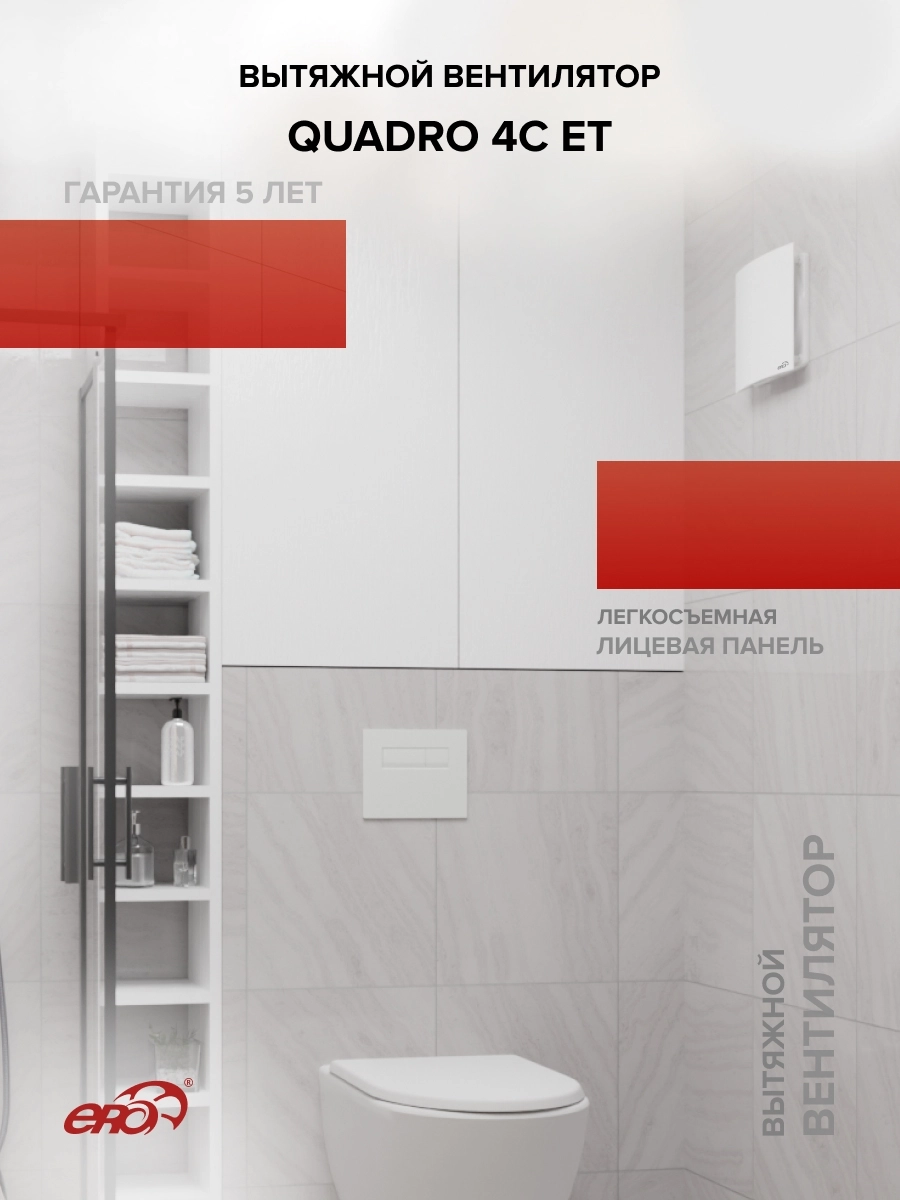 Вентилятор QUADRO 4C ET разработан для постоянной или периодической вытяжной вентиляции санузлов, душевых, кухонь и других бытовых помещений. Он идеально подходит для установки в вентиляционные шахты и соединения с воздуховодами.
