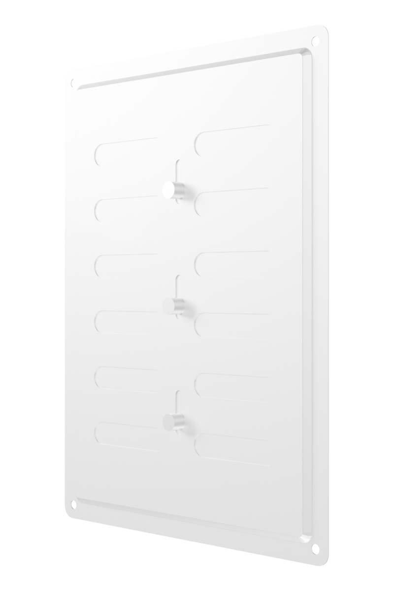 Решетка изготовлена из стали с полимерным покрытием, устойчива к механическим воздействиям и может размещаться как внутри, так и снаружи помещений.