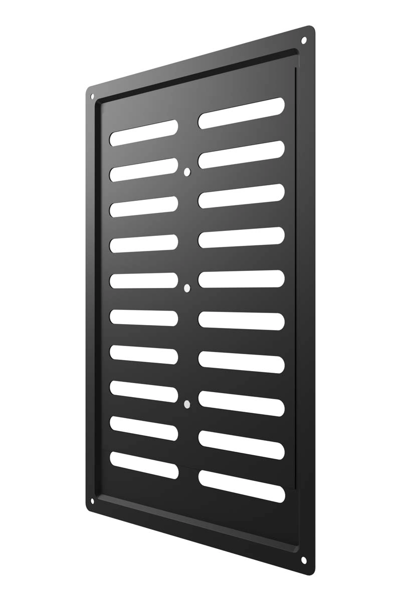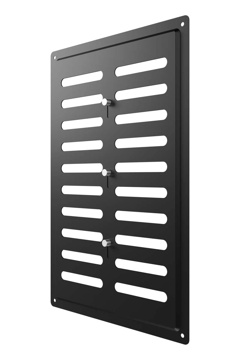 Регулируемая металлическая решетка предназначена для установки в вентиляционный проем, где требуется изменение объема поставляемого воздуха. Решетка изготовлена из стали с полимерным покрытием, устойчива к механическим воздействиям и может размещаться как внутри, так и снаружи помещений. С помощью регулятора на лицевой части решетки возможно изменить объем воздушного потока или полностью перекрыть вентиляционный канал. Регулируемая решетка используется, в том числе, для декоративного оформления вентиляционного отверстия, является элементом интерьера и дополняет общий стиль помещения. Небольшая толщина стали — 0,5 мм — позволяет монтировать решетку практически вровень со стеной, а разнообразие цветов — подобрать оптимальный вариант для любого интерьера. Материал: сталь с полимерным покрытием