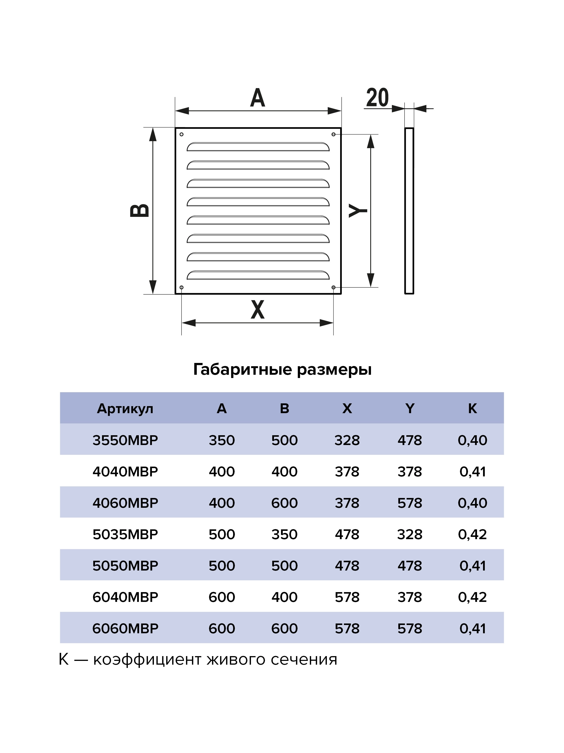 Коэффициент «живого» сечения — это доля открытой площади решетки, через которую проходит воздух.