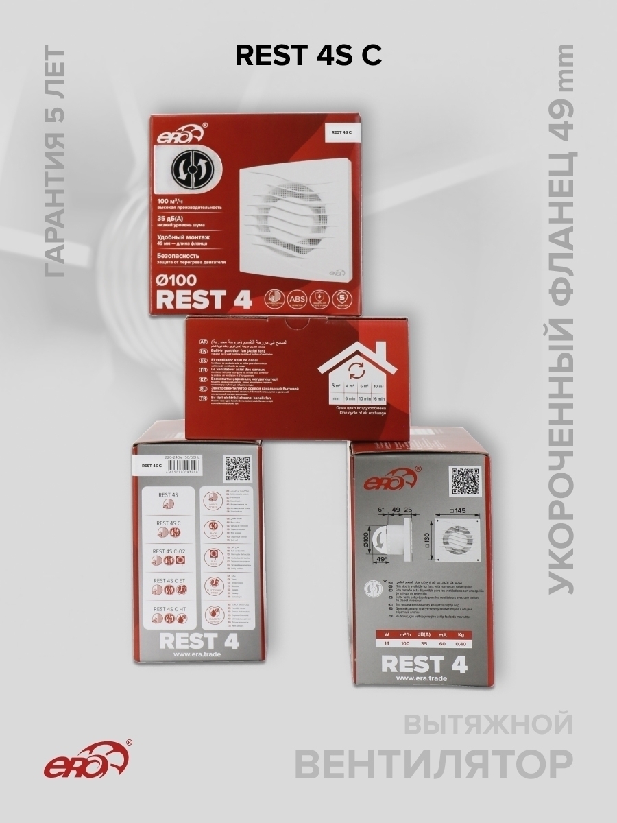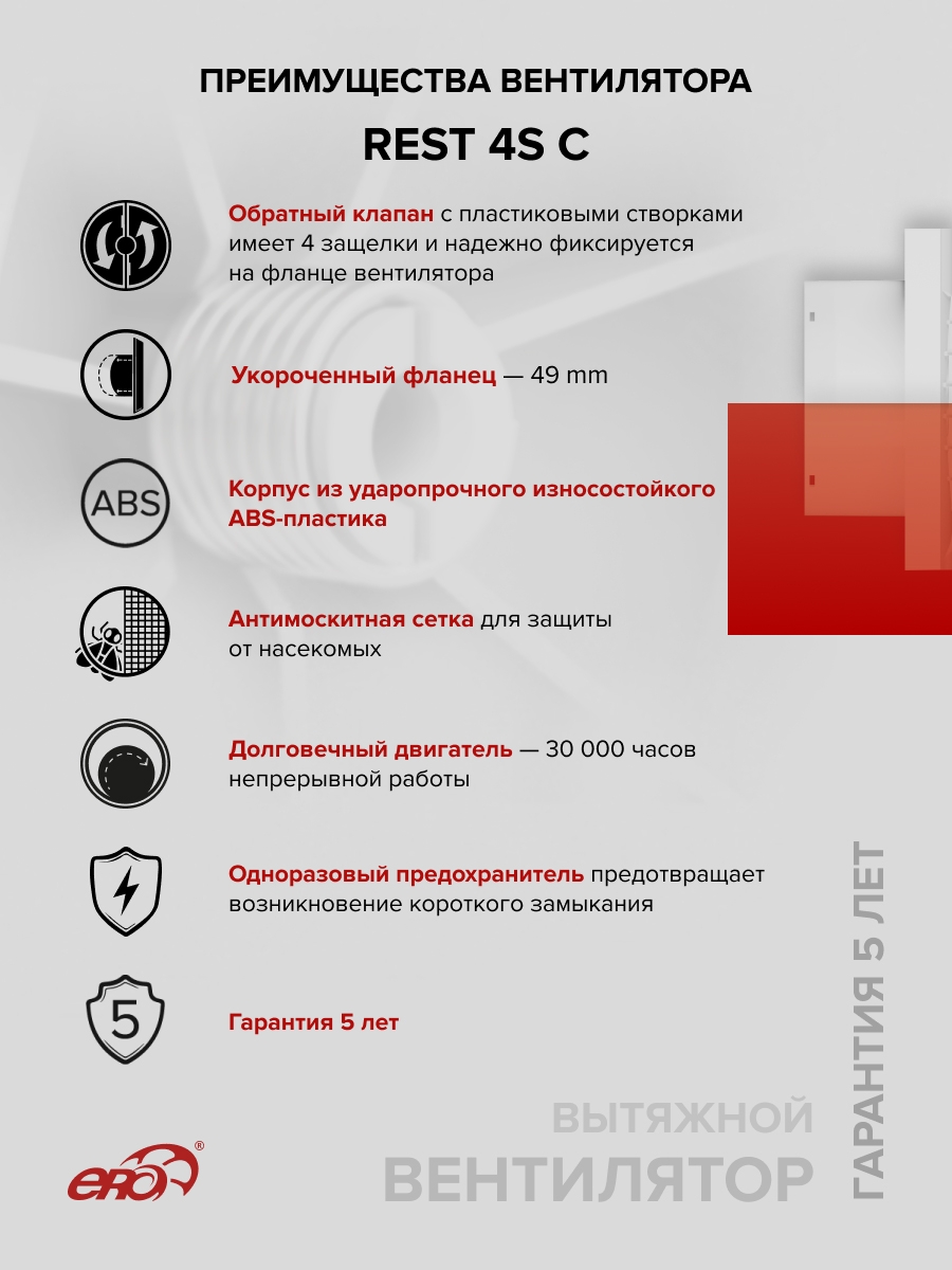 Благодаря высокой производительности (100 м³/ч) REST эффективно вытягивает из помещения влажный воздух и удаляет неприятные запахи.