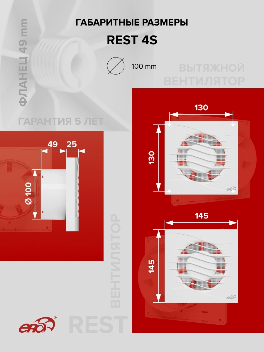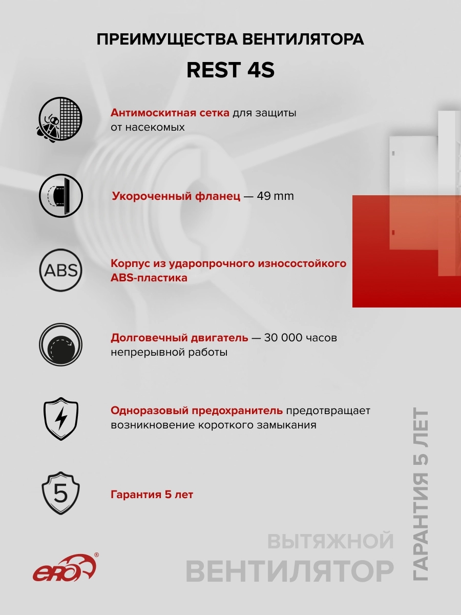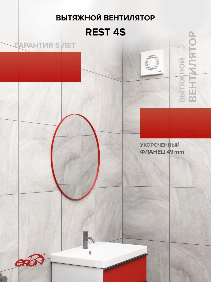 Благодаря высокой производительности (100 м³/ч) REST эффективно вытягивает из помещения влажный воздух и удаляет неприятные запахи.