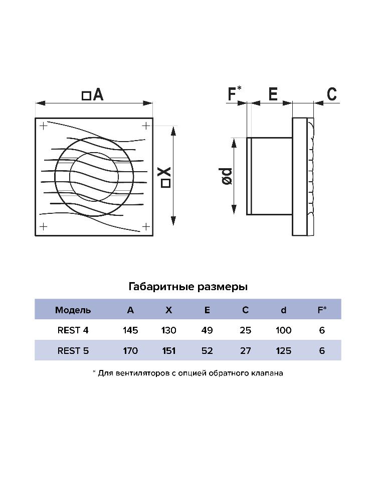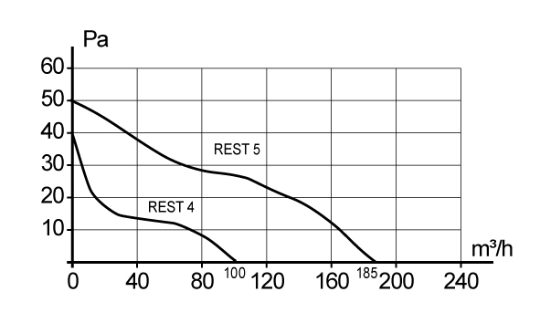 Благодаря высокой производительности (125 м³/ч) REST эффективно вытягивает из помещения влажный воздух и удаляет неприятные запахи.