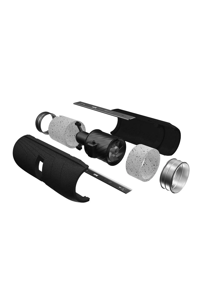 Легкий и прочный корпус из вспененного полипропилена с шумопоглощающими вставками исключает вибрации, передающиеся от вентилятора к воздуховодам, снижает шум от работы вентилятора.