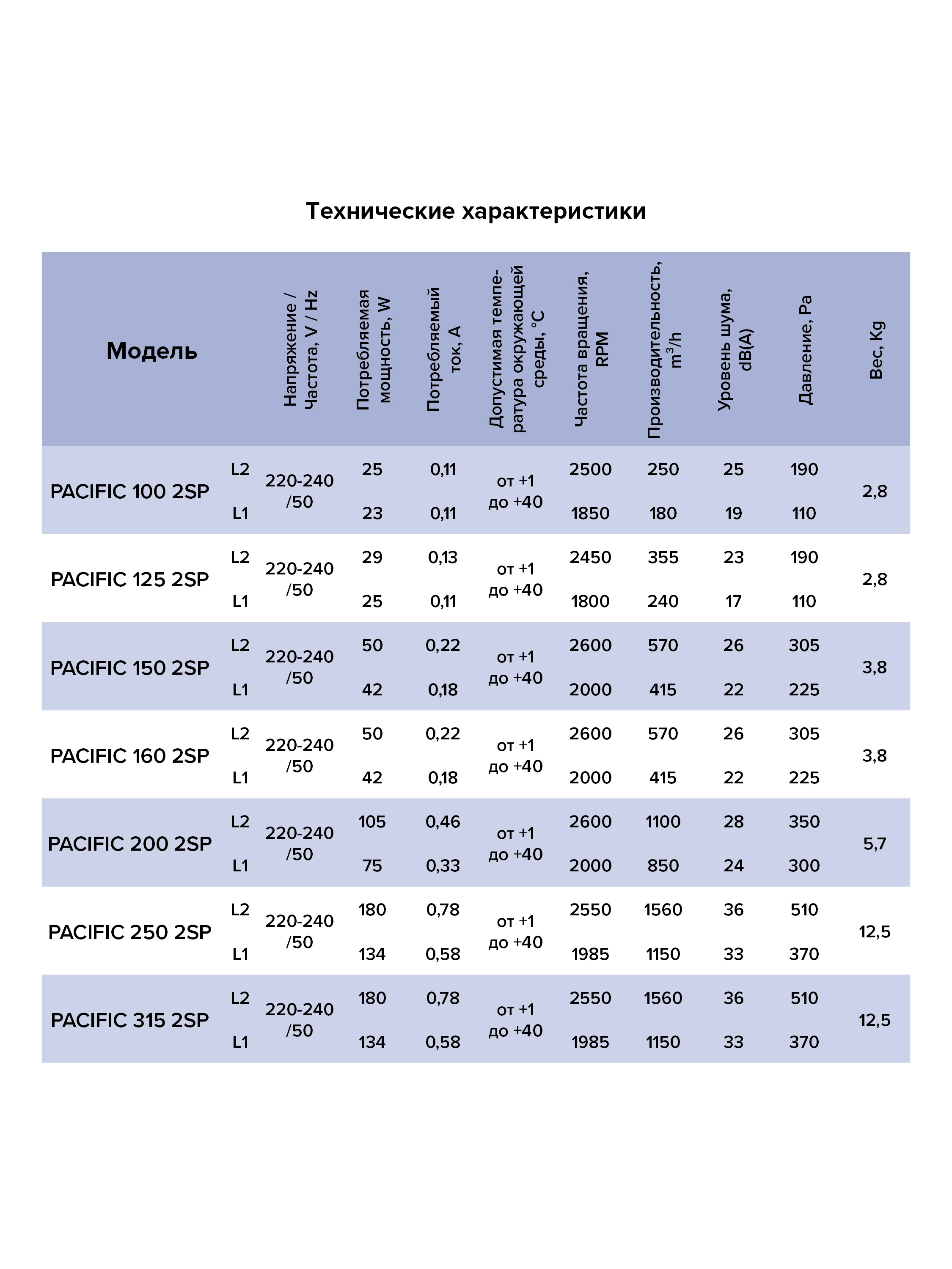 PACIFIC с крыльчаткой смешанного типа и двухскоростным однофазным двигателем на шарикоподшипниках сочетает преимущества центробежных (высокое давление) и осевых (высокий расход воздуха) вентиляторов.