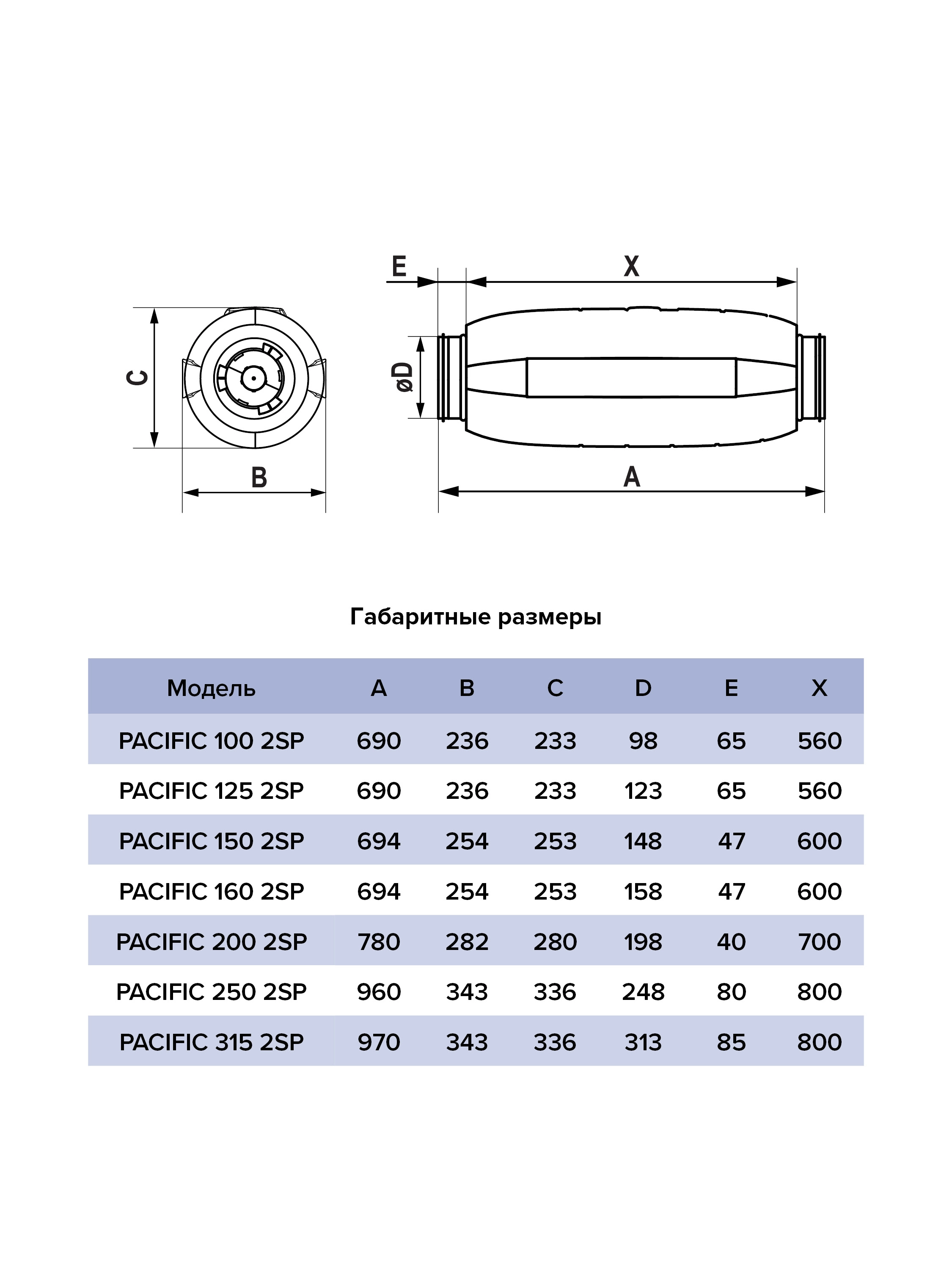 PACIFIC с крыльчаткой смешанного типа и двухскоростным однофазным двигателем на шарикоподшипниках сочетает преимущества центробежных (высокое давление) и осевых (высокий расход воздуха) вентиляторов.