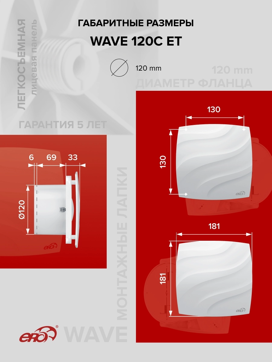 — впервые в ассортименте торговой марки ERA представлены вентиляторы с диаметром фланца 120 мм.