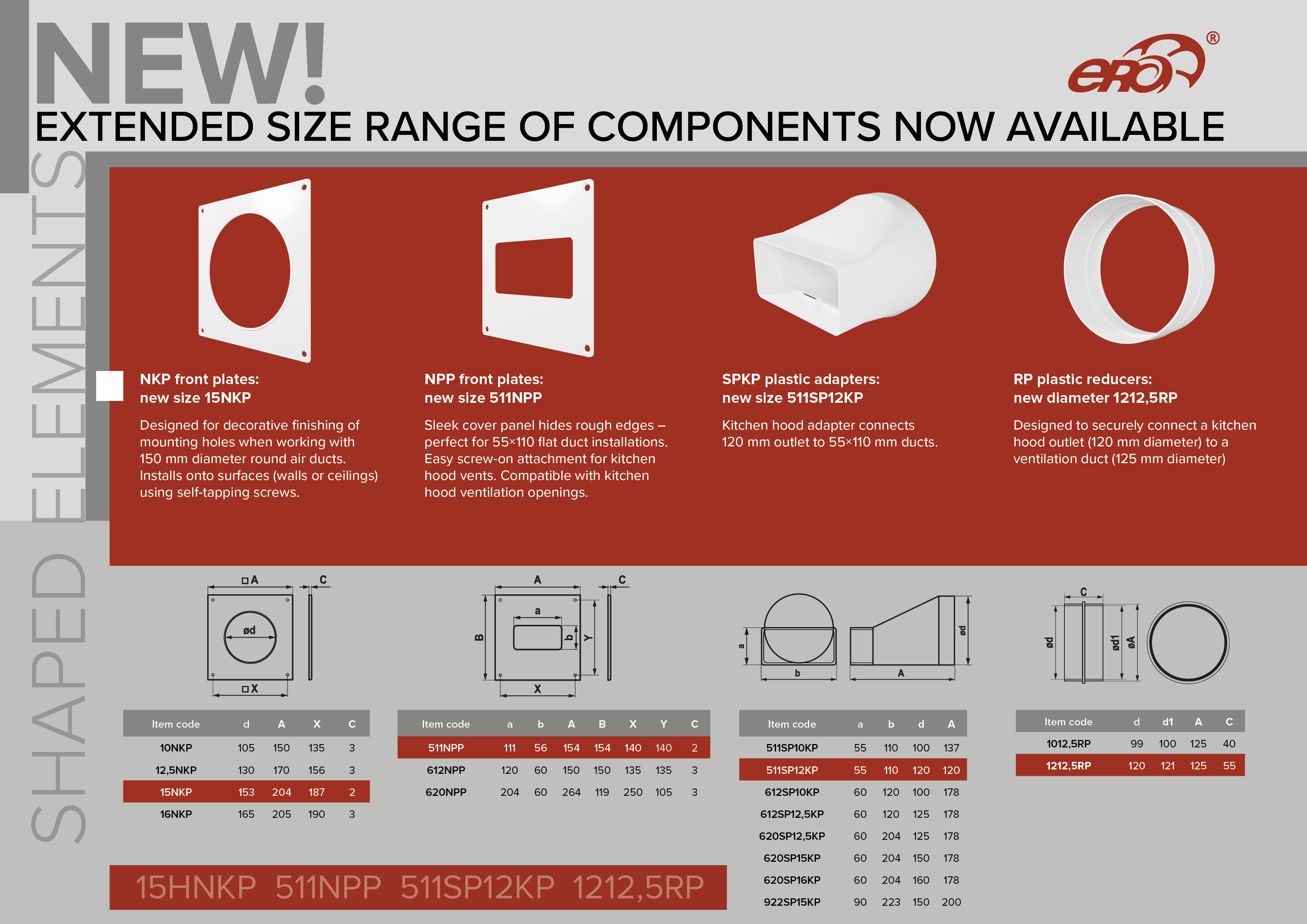 15NKP Front plate, 511NPP Front plate, 511SP12KP Plastic adapter, 1212,5RP Plastic reducer