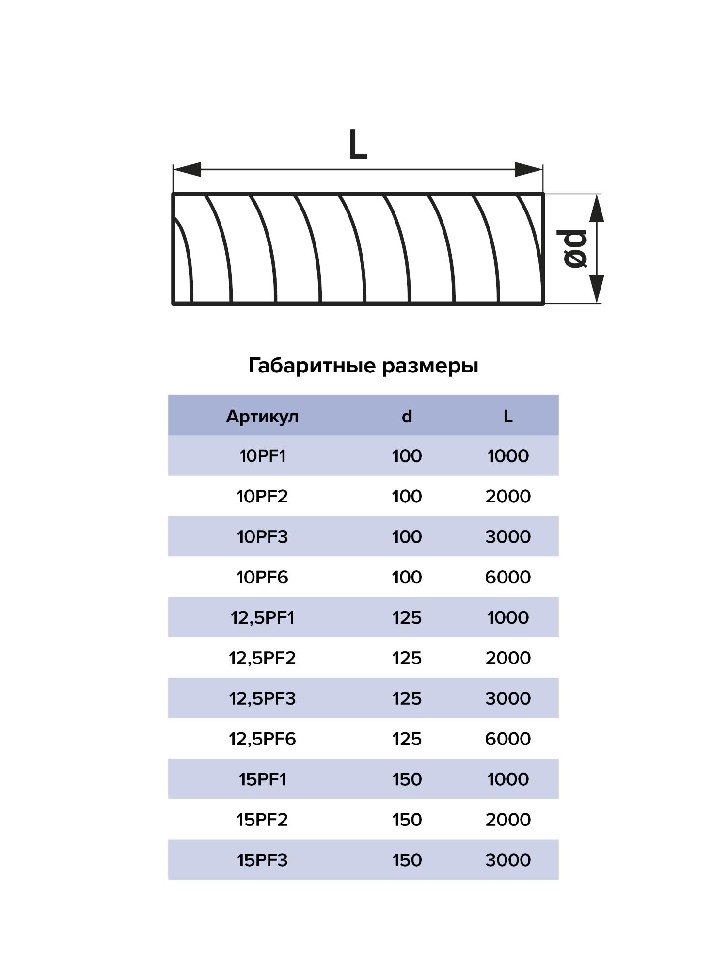 PF flexible reinforced ducts are used in low and medium-pressure air conditioning and ventilation systems. Material: PVC film and steel wire. Thickness: 0.12 mm. Operating temperature: -30 to +100 °C. Available in several colors. Also available in rectangular versions and various colors.