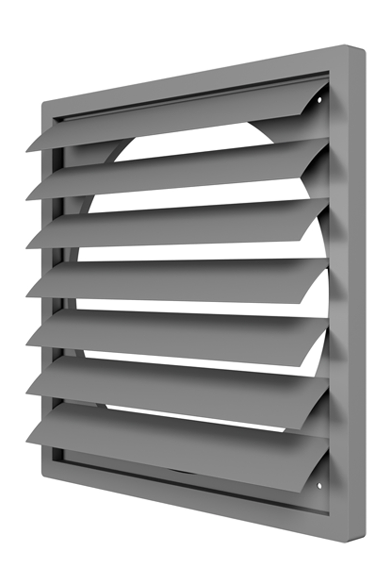 KF ventilation grille is designed for decoration of outdoor ventilation outputs. Equipped with gravity louvers for back draft protection. KF is made of ASA-plastic resistant to temperature and weather changes. 2424K20F, 2929K25F, 3636K31,5F, 4141K35,5F, 4646K40F are available only in grey. Gravity louvers work as a back-draught shutter preventing back-draft. Resistant to temperature and weather changes.