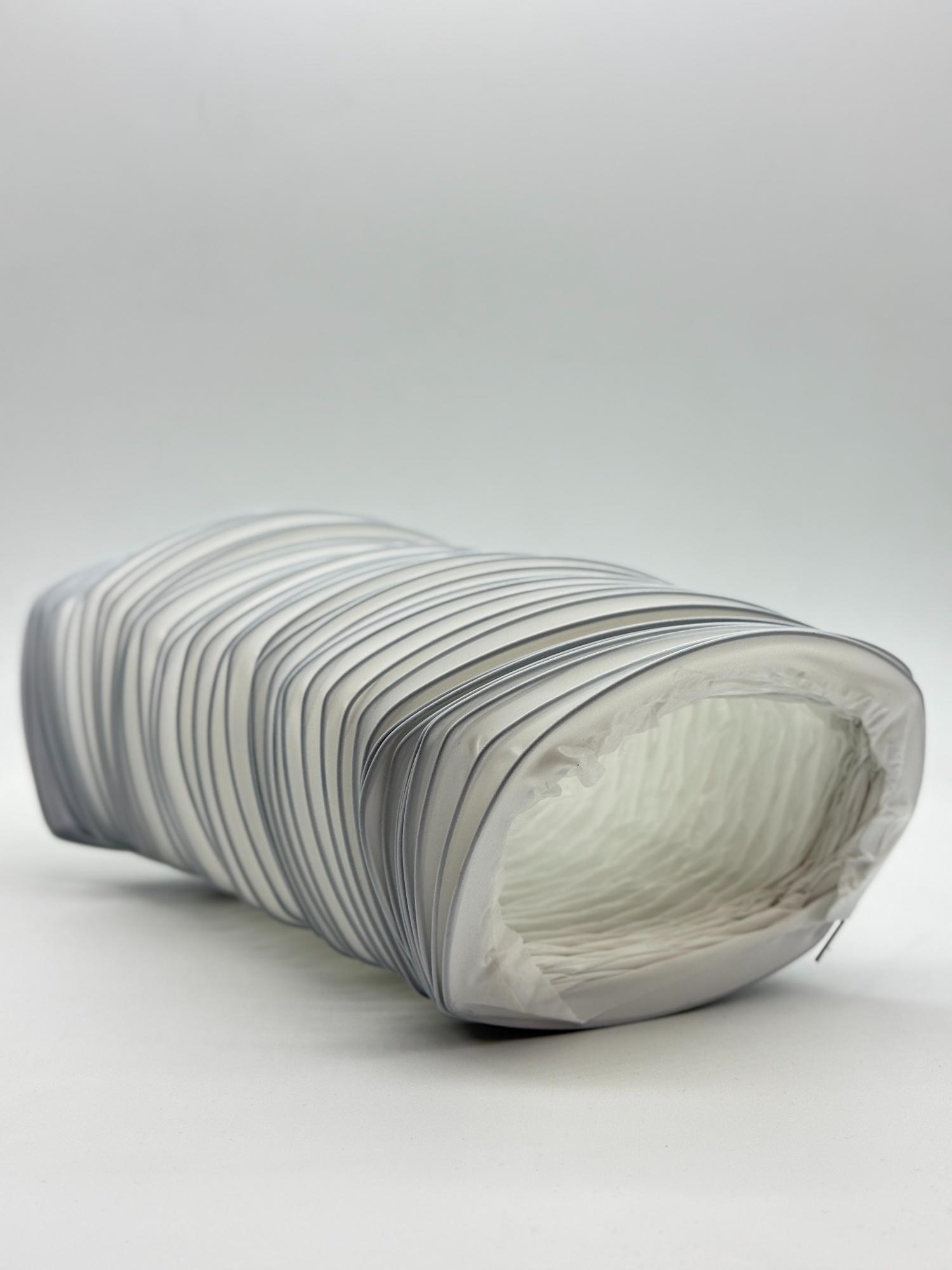 PF flexible reinforced ducts are used in low and medium-pressure air conditioning and ventilation systems. Material: PVC film and steel wire. Thickness: 0.12 mm. Operating temperature: -30 to +100 °C. Available in several colors and in round versions.