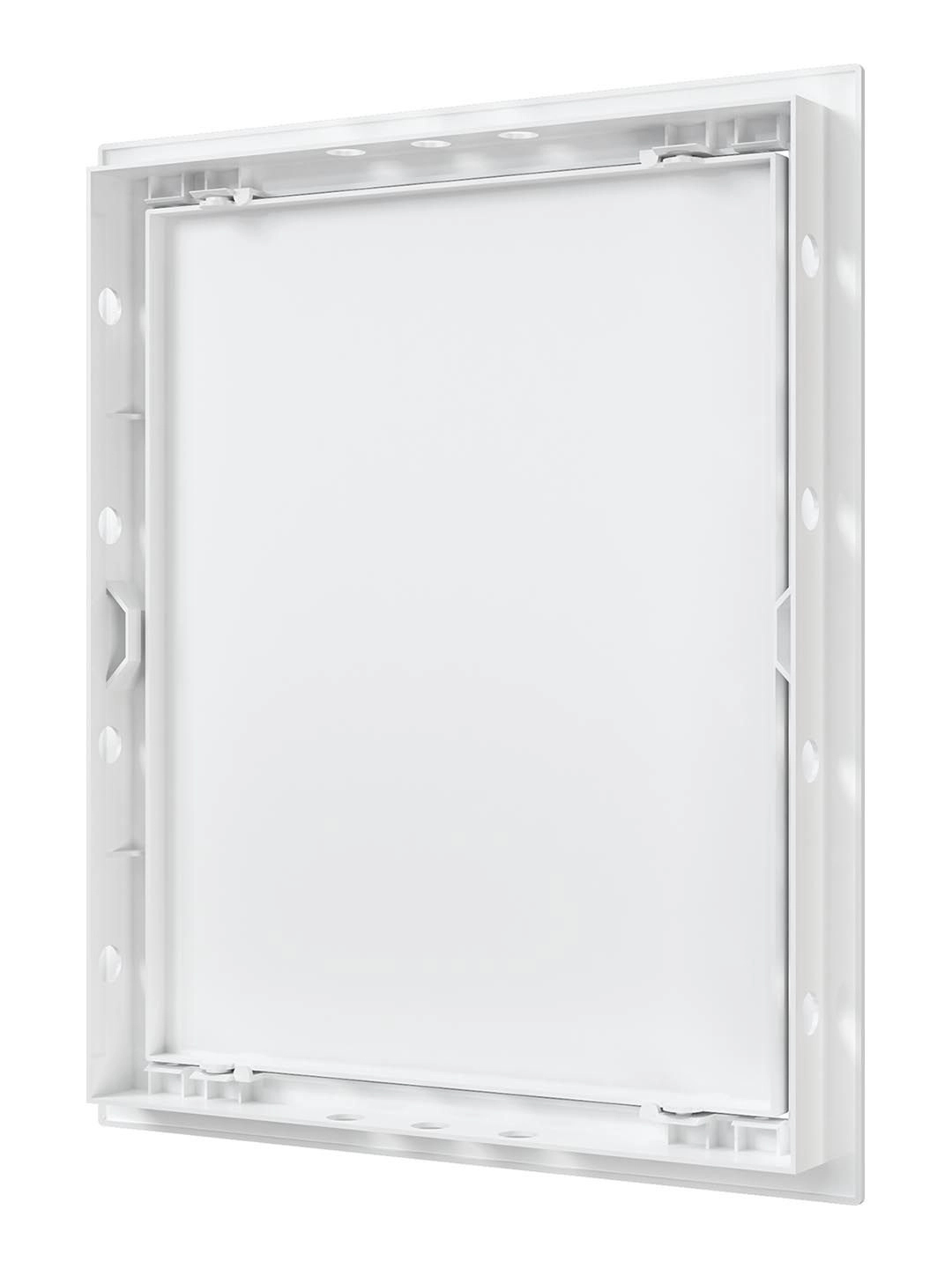 AD plastic access doors with flange for fast and easy access to hidden utility systems. Functional design: the door can be mounted either for left-hand or right-hand opening. Easy opening and closing by pushing the door corners. To open the door simultaneously push the corners on the wavy surface.