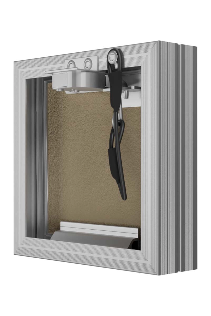 Revision access doors D Ceramo Base with front door opening for tiles are designed for hidden access and maintenance of engineering, plumbing, electrical and other communications. D Ceramo Base are installed in wall and partition niches made of masonry (brick, concrete, foam concrete, etc.) or sheet (plasterboard, etc.) materials. Open and close with a slight press on the door, after closing they are securely fixed in the frame. Revision access doors are made of aluminum profile. Door is filled with moisture-resistant plasterboard. The door is equipped with a pressure lock, a rubber seal, a safety mechanism for safe opening of the door, has the ability to completely remove the door. Maximum opening angle is 180 degrees.