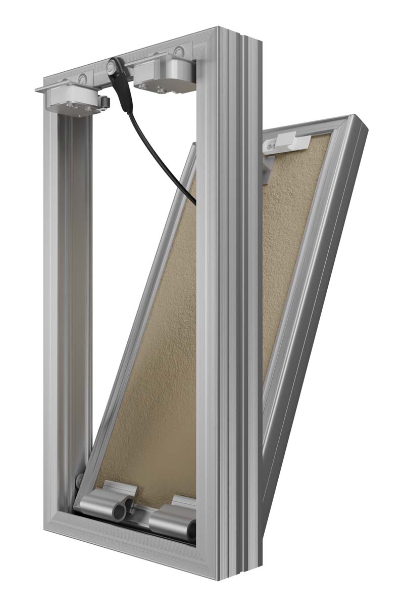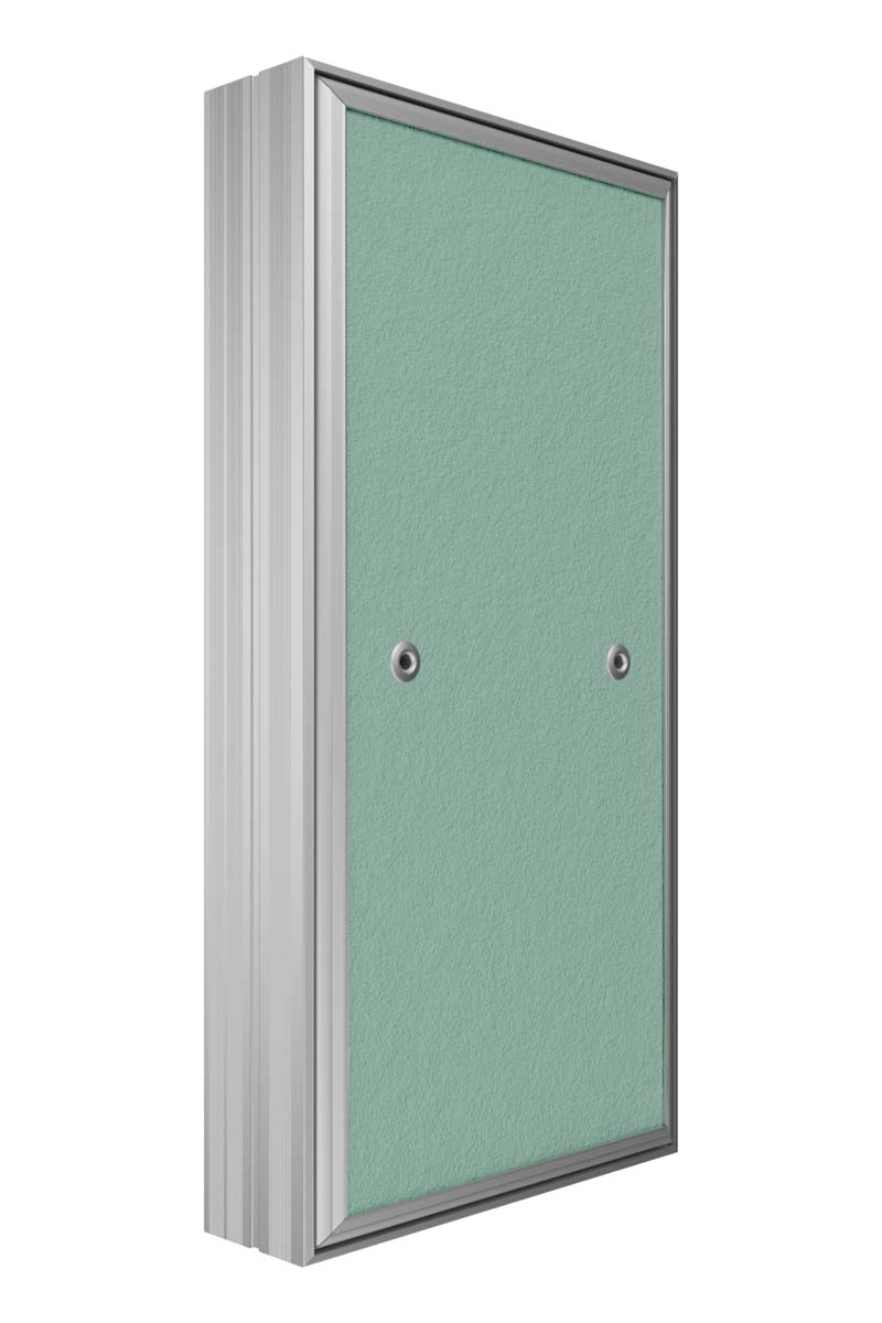 Revision access doors D Ceramo Base with front door opening for tiles are designed for hidden access and maintenance of engineering, plumbing, electrical and other communications. D Ceramo Base are installed in wall and partition niches made of masonry (brick, concrete, foam concrete, etc.) or sheet (plasterboard, etc.) materials. Open and close with a slight press on the door, after closing they are securely fixed in the frame. Revision access doors are made of aluminum profile. Door is filled with moisture-resistant plasterboard. The door is equipped with a pressure lock, a rubber seal, a safety mechanism for safe opening of the door, has the ability to completely remove the door. Maximum opening angle is 180 degrees.
