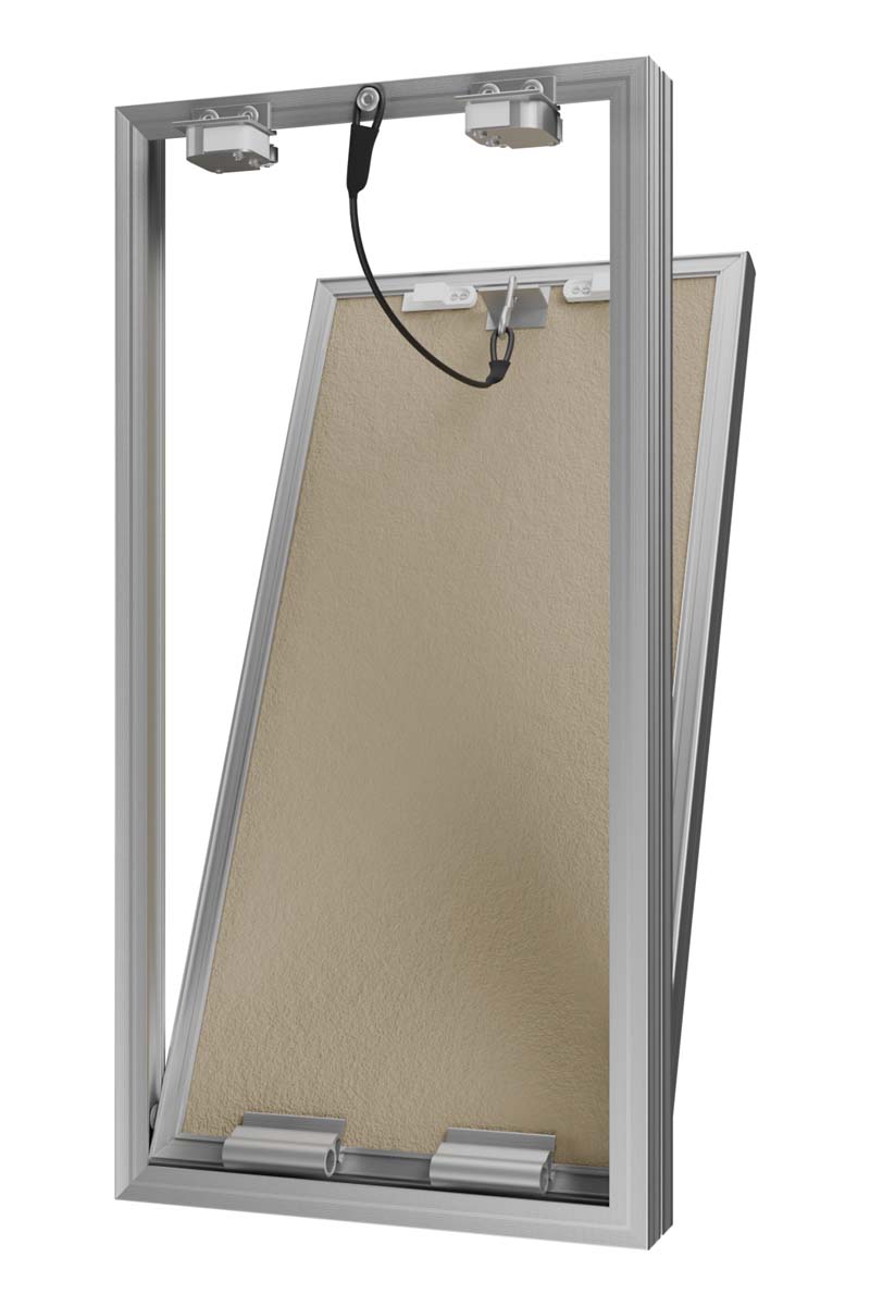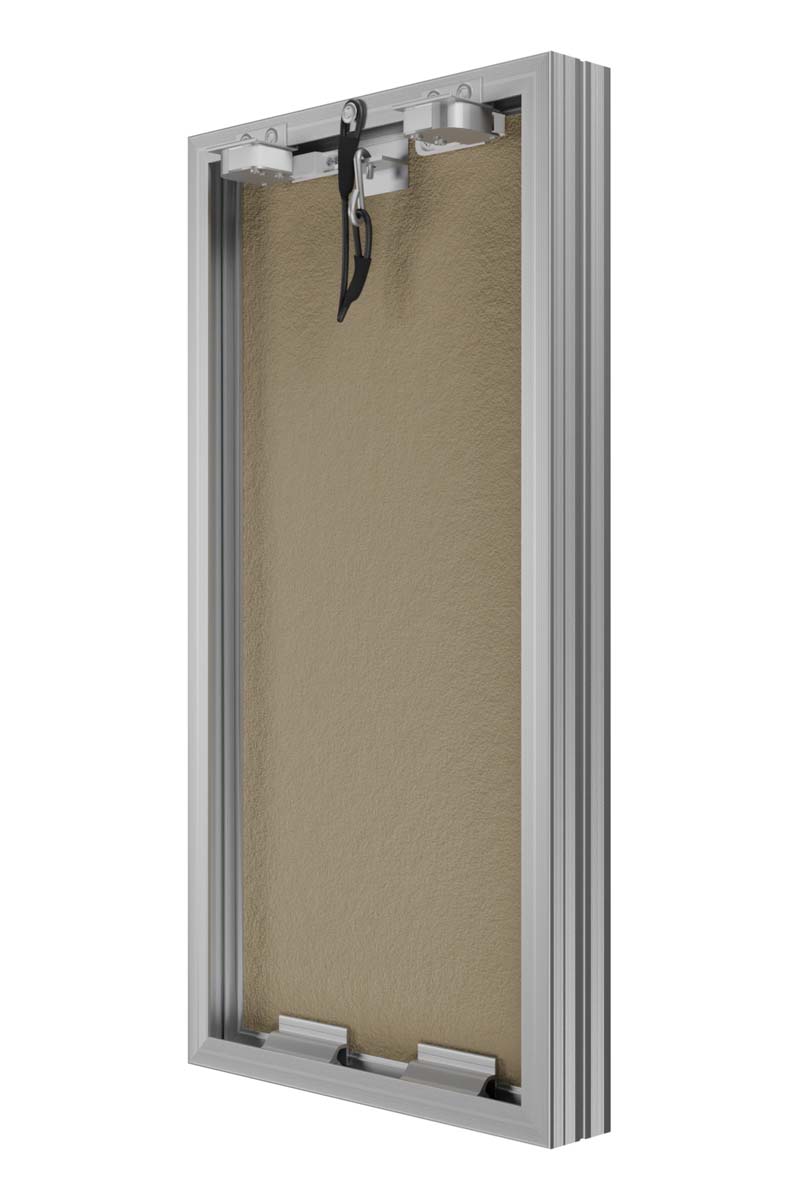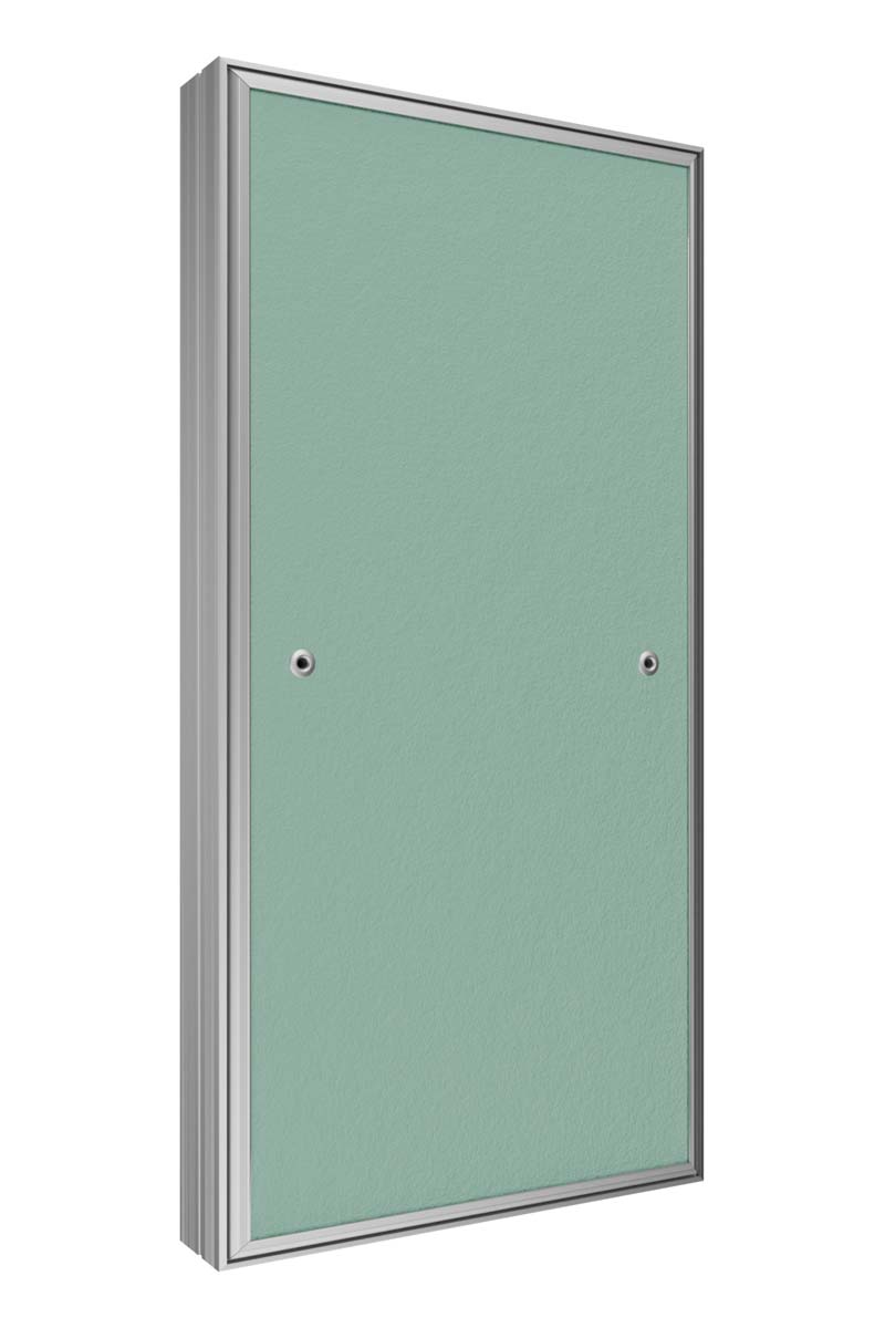 Revision access doors D Ceramo Base with front door opening for tiles are designed for hidden access and maintenance of engineering, plumbing, electrical and other communications. D Ceramo Base are installed in wall and partition niches made of masonry (brick, concrete, foam concrete, etc.) or sheet (plasterboard, etc.) materials. Open and close with a slight press on the door, after closing they are securely fixed in the frame. Revision access doors are made of aluminum profile. Door is filled with moisture-resistant plasterboard. The door is equipped with a pressure lock, a rubber seal, a safety mechanism for safe opening of the door, has the ability to completely remove the door. Maximum opening angle is 180 degrees.