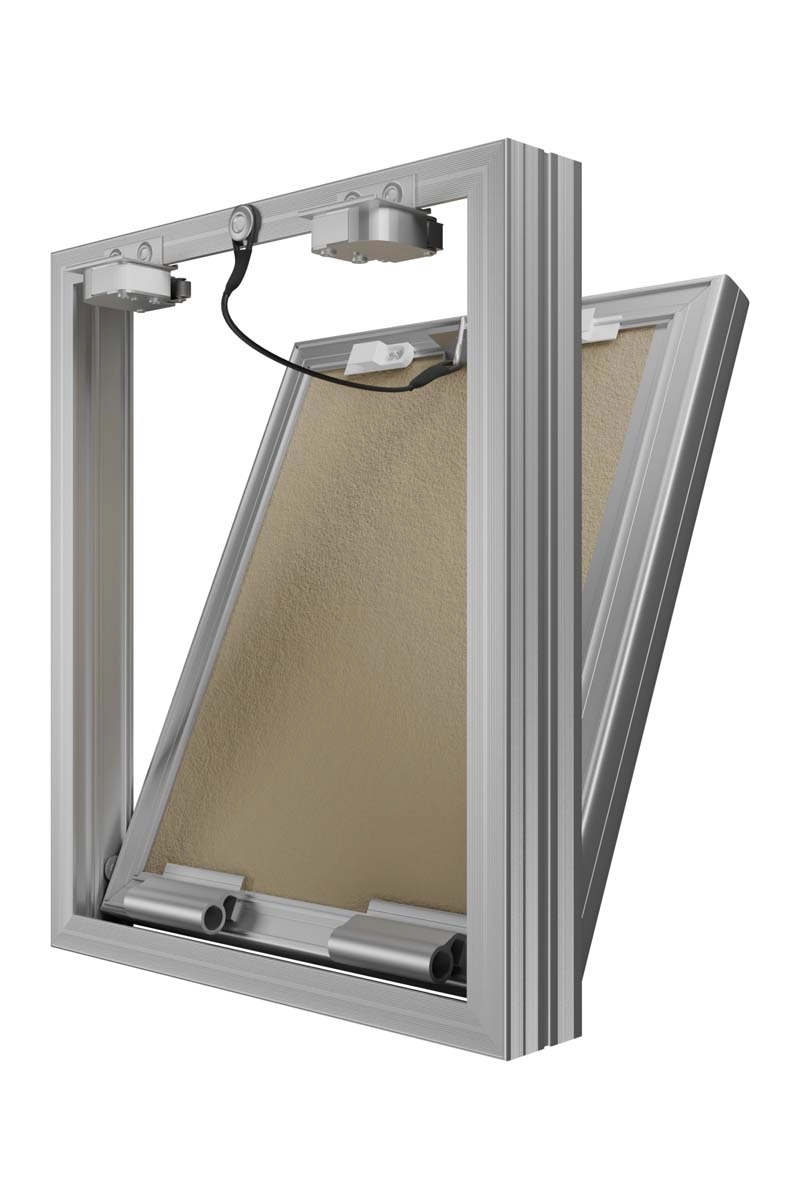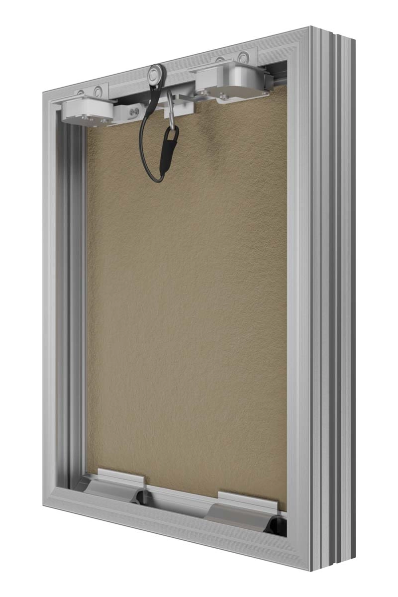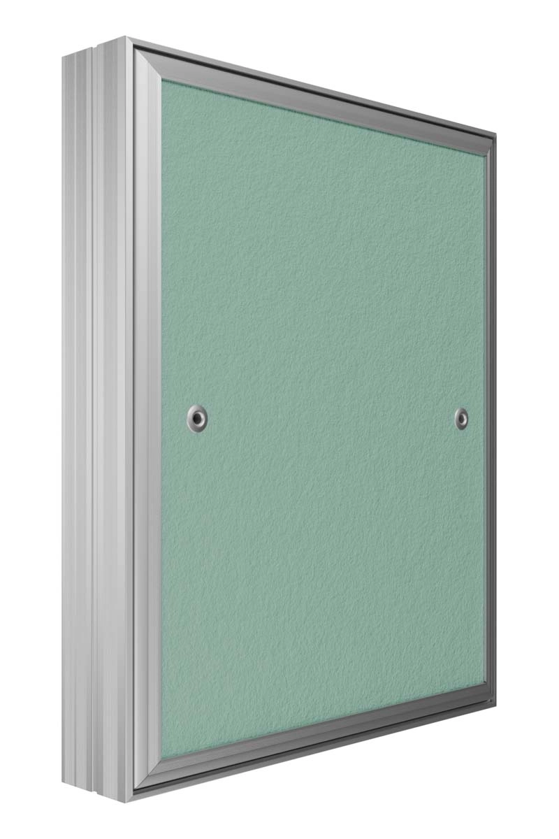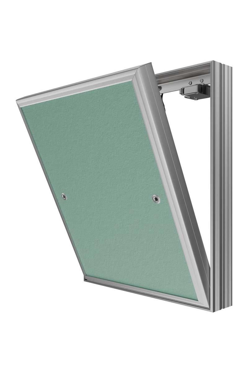 Revision access doors D Ceramo Base with front door opening for tiles are designed for hidden access and maintenance of engineering, plumbing, electrical and other communications. D Ceramo Base are installed in wall and partition niches made of masonry (brick, concrete, foam concrete, etc.) or sheet (plasterboard, etc.) materials. Open and close with a slight press on the door, after closing they are securely fixed in the frame. Revision access doors are made of aluminum profile. Door is filled with moisture-resistant plasterboard. The door is equipped with a pressure lock, a rubber seal, a safety mechanism for safe opening of the door, has the ability to completely remove the door. Maximum opening angle is 180 degrees.