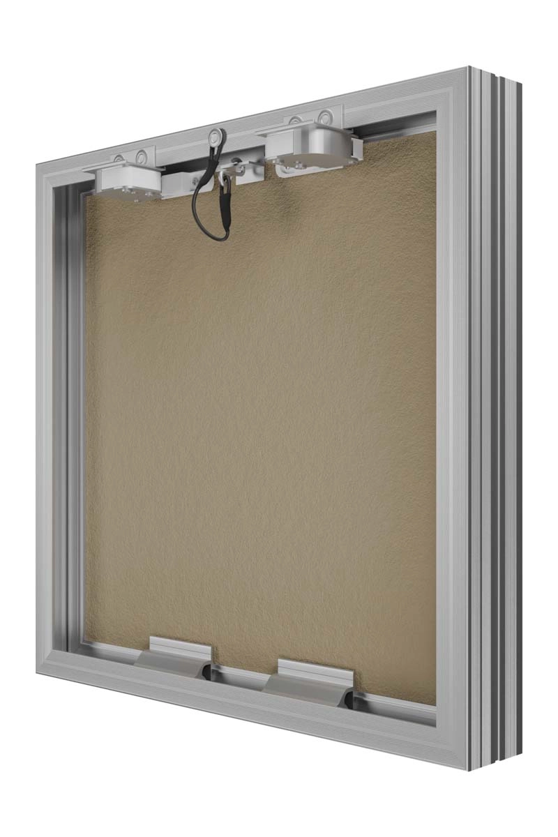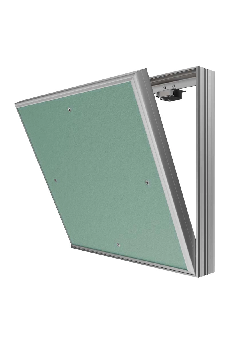 Revision access doors D Ceramo Base with front door opening for tiles are designed for hidden access and maintenance of engineering, plumbing, electrical and other communications. D Ceramo Base are installed in wall and partition niches made of masonry (brick, concrete, foam concrete, etc.) or sheet (plasterboard, etc.) materials. Open and close with a slight press on the door, after closing they are securely fixed in the frame. Revision access doors are made of aluminum profile. Door is filled with moisture-resistant plasterboard. The door is equipped with a pressure lock, a rubber seal, a safety mechanism for safe opening of the door, has the ability to completely remove the door. Maximum opening angle is 180 degrees.
