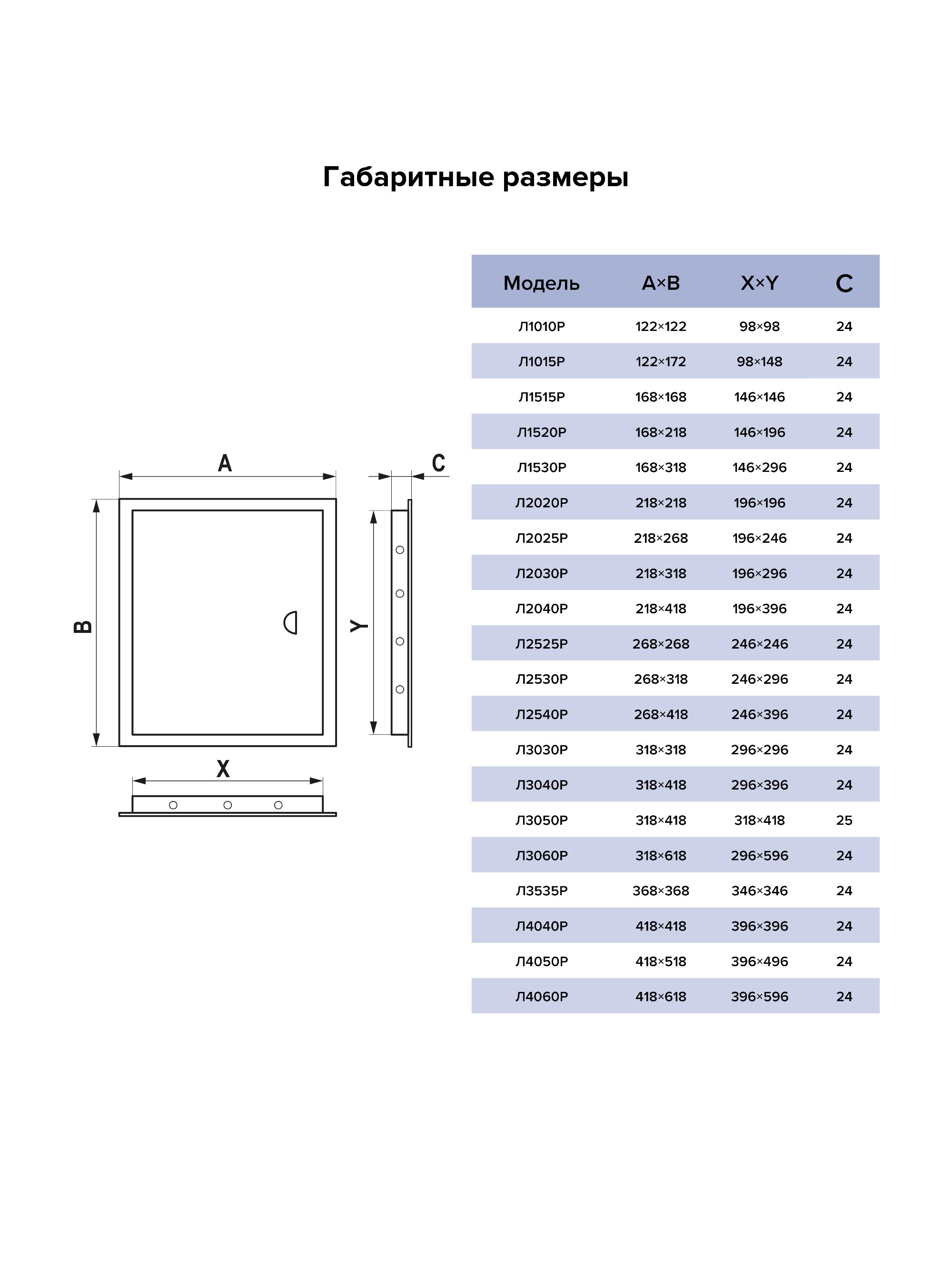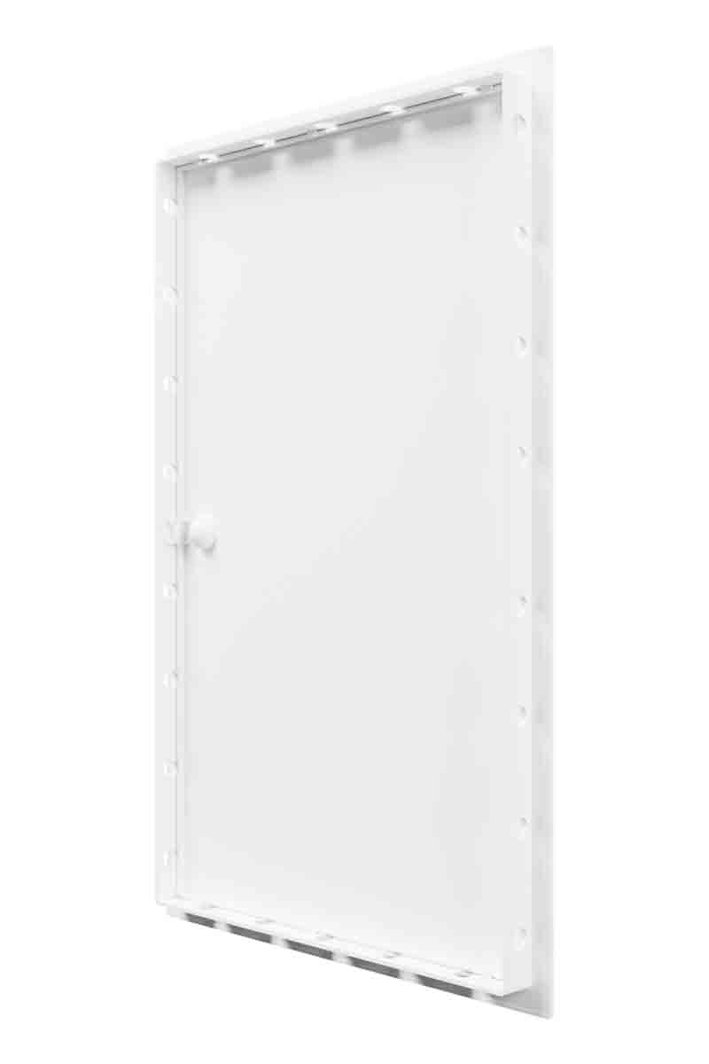 • Made of ABS-plastic. • Designed for wall and ceiling mounting. • The size of the mounting hole must be equal to LR access door flange size. • After the frame’s installation the door can be mounted both for the left and right-side opening. • Equipped with a handle for easy opening and closing. • “Open wide” design allows easy access to hidden utility systems.