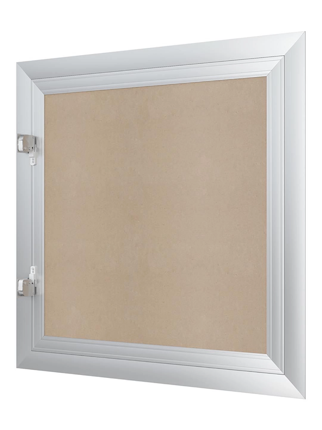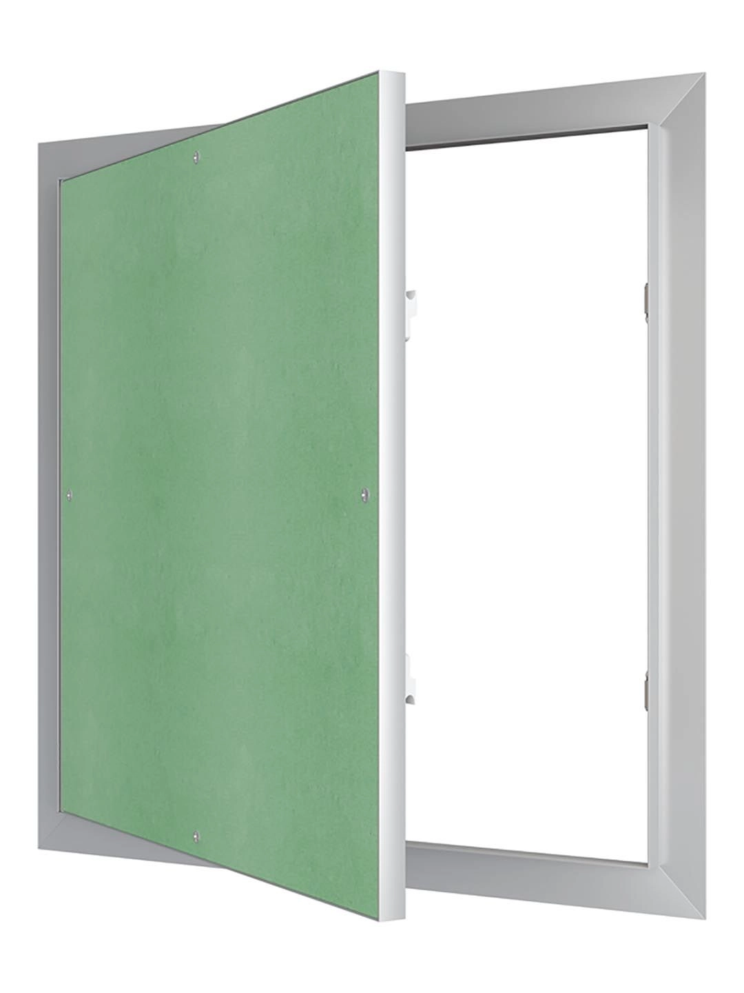 LPU hidden-mount access doors for painting and wall-papering. For mounting into walls made of a plate material with a further fastening to it. Water-resistant gypsum plasterboard door is adjusted to be primed, putty covered, painted or wall-papered to match the interior. Can be customized at request. For fastening with screws, the mounting holes must be made in a gypsum plasterboard wall and the door frame simultaneously.
