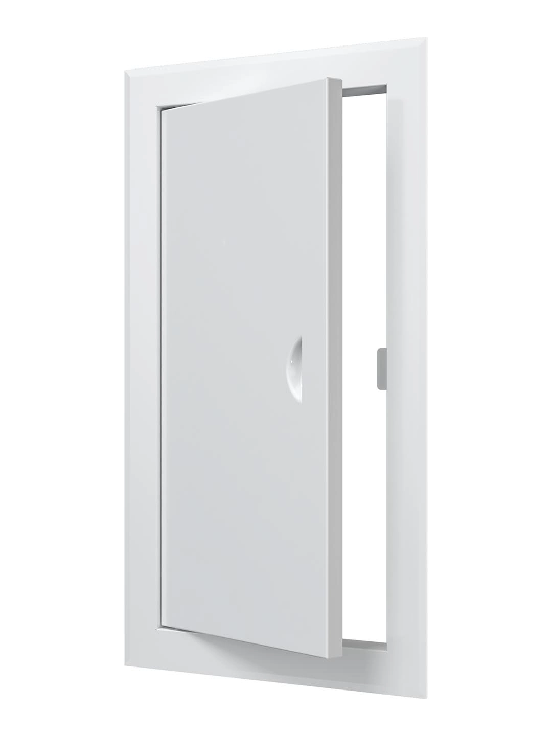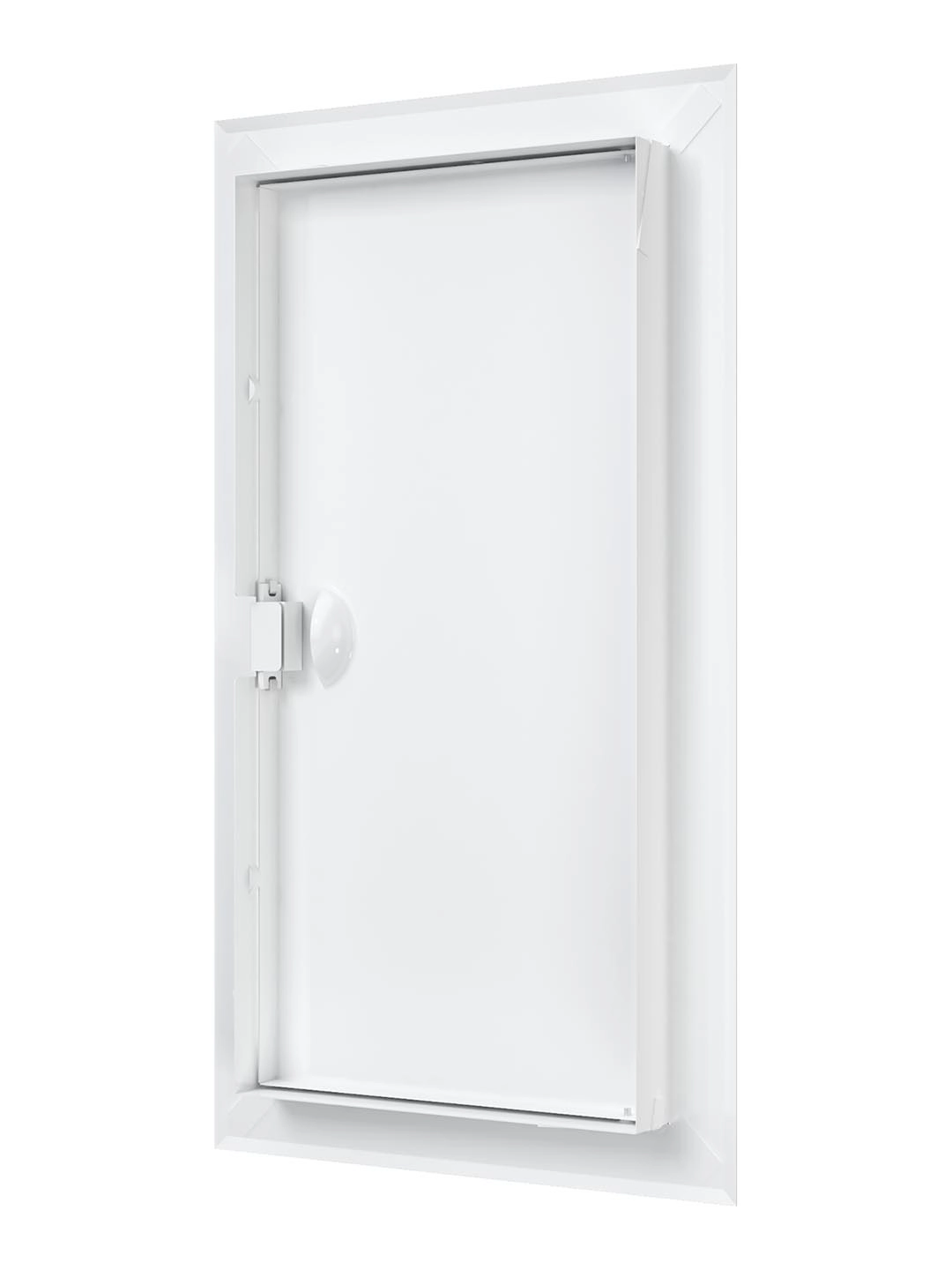 It is installed in the wall. Equipped with a handle for easy opening/closing of the hatch, magnetic locks to fix the door in the closed position and prevent accidental opening. Along the contour of the door there is a frame, which hides any irregularities in the opening.