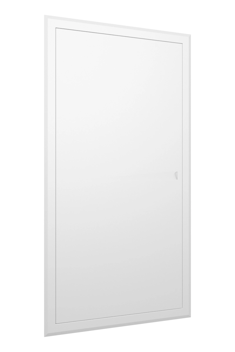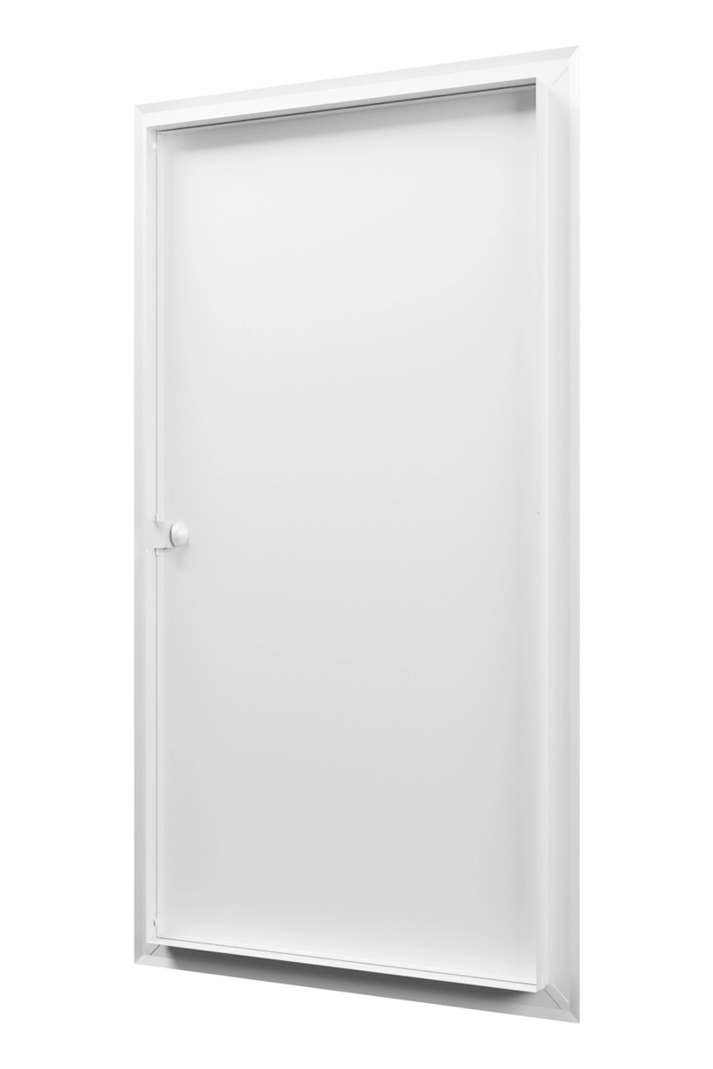 It is installed in the wall. Equipped with a handle for easy opening/closing of the hatch, magnetic locks to fix the door in the closed position and prevent accidental opening. Along the contour of the door there is a frame, which hides any irregularities in the opening.