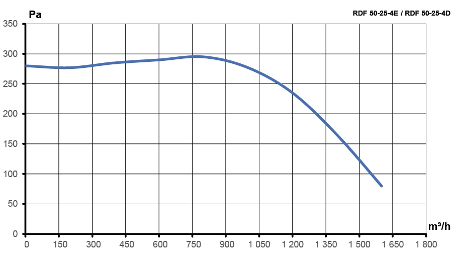 Centrifugal Duct Fan RDF This fan is designed to maintain the specified air velocity within the ventilation ducts of residential and commercial buildings. The fan housing is made of galvanized steel, constructed without contact welding, utilizing a Pittsburgh lock design. It is equipped with a high-pressure impeller featuring forward-curved blades. The fan is available with single-phase and three-phase asynchronous electric motors with an external rotor. The motors are equipped with a reusable bimetallic thermal protection system to prevent overheating. The fan can be installed in any orientation. Service Life: 5 years Performance: Ranges from 1153 to 7250 m³/h