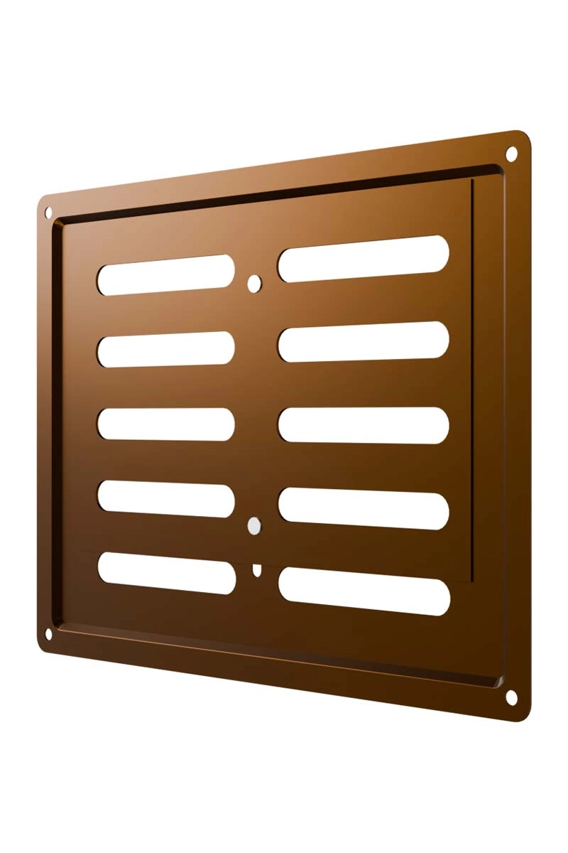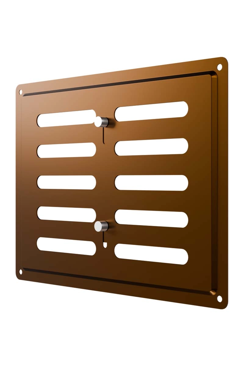 Регулируемая металлическая решетка предназначена для установки в вентиляционный проем, где требуется изменение объема поставляемого воздуха. Решетка изготовлена из стали с полимерным покрытием, устойчива к механическим воздействиям и может размещаться как внутри, так и снаружи помещений. С помощью регулятора на лицевой части решетки возможно изменить объем воздушного потока или полностью перекрыть вентиляционный канал. Регулируемая решетка используется, в том числе, для декоративного оформления вентиляционного отверстия, является элементом интерьера и дополняет общий стиль помещения. Небольшая толщина стали — 0,5 мм — позволяет монтировать решетку практически вровень со стеной, а разнообразие цветов — подобрать оптимальный вариант для любого интерьера. Материал: сталь с полимерным покрытием