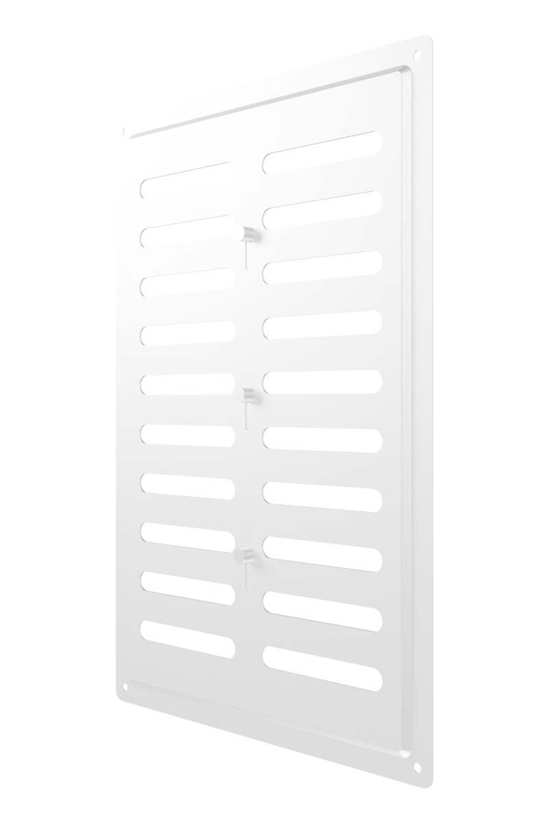 Регулируемая металлическая решетка предназначена для установки в вентиляционный проем, где требуется изменение объема поставляемого воздуха. Решетка изготовлена из стали с полимерным покрытием, устойчива к механическим воздействиям и может размещаться как внутри, так и снаружи помещений. С помощью регулятора на лицевой части решетки возможно изменить объем воздушного потока или полностью перекрыть вентиляционный канал. Регулируемая решетка используется, в том числе, для декоративного оформления вентиляционного отверстия, является элементом интерьера и дополняет общий стиль помещения. Небольшая толщина стали — 0,5 мм — позволяет монтировать решетку практически вровень со стеной, а разнообразие цветов — подобрать оптимальный вариант для любого интерьера. Материал: сталь с полимерным покрытием