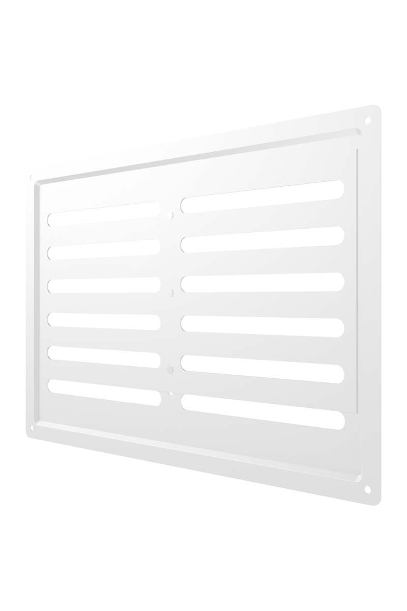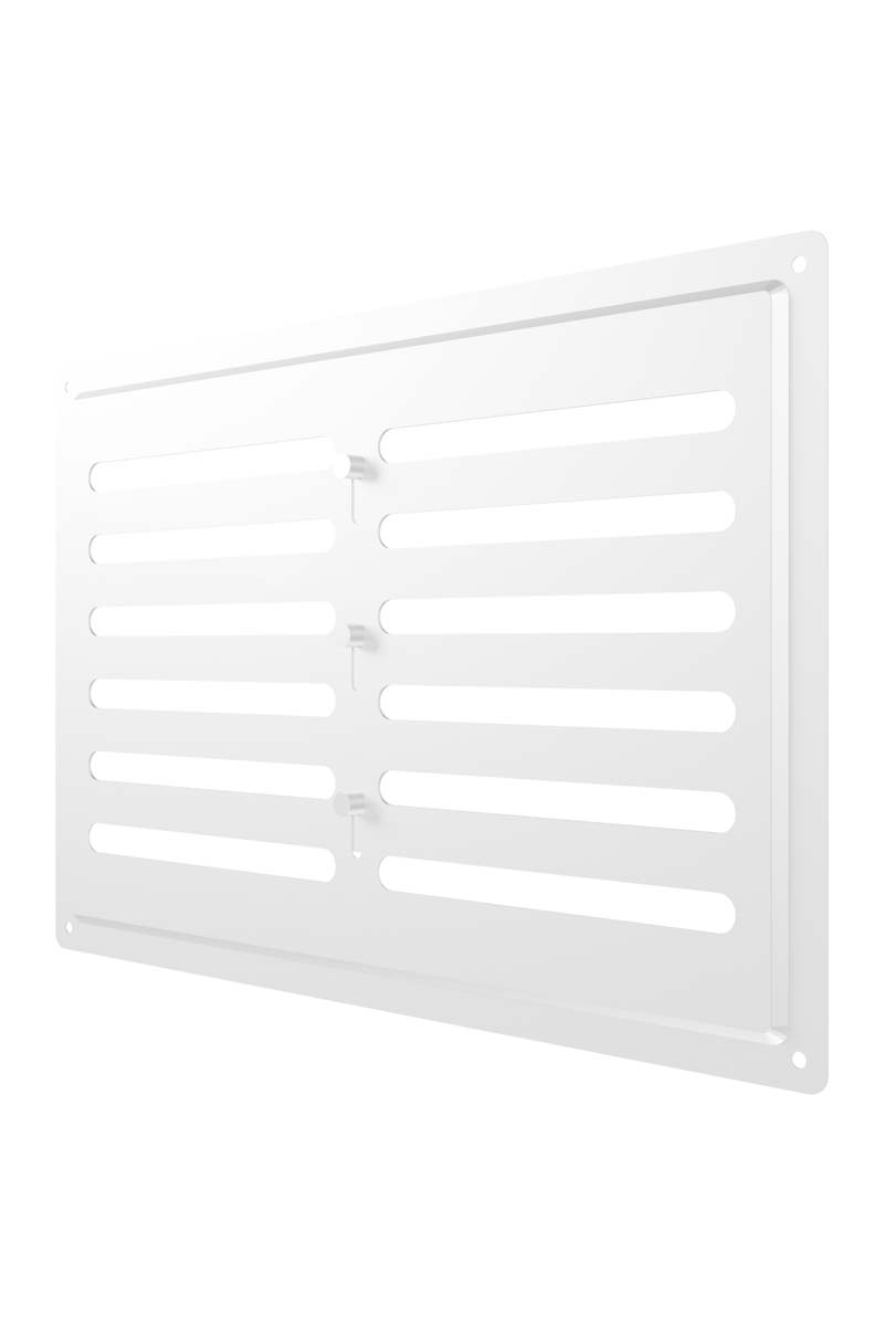 Регулируемая металлическая решетка предназначена для установки в вентиляционный проем, где требуется изменение объема поставляемого воздуха. Решетка изготовлена из стали с полимерным покрытием, устойчива к механическим воздействиям и может размещаться как внутри, так и снаружи помещений. С помощью регулятора на лицевой части решетки возможно изменить объем воздушного потока или полностью перекрыть вентиляционный канал. Регулируемая решетка используется, в том числе, для декоративного оформления вентиляционного отверстия, является элементом интерьера и дополняет общий стиль помещения. Небольшая толщина стали — 0,5 мм — позволяет монтировать решетку практически вровень со стеной, а разнообразие цветов — подобрать оптимальный вариант для любого интерьера. Материал: сталь с полимерным покрытием