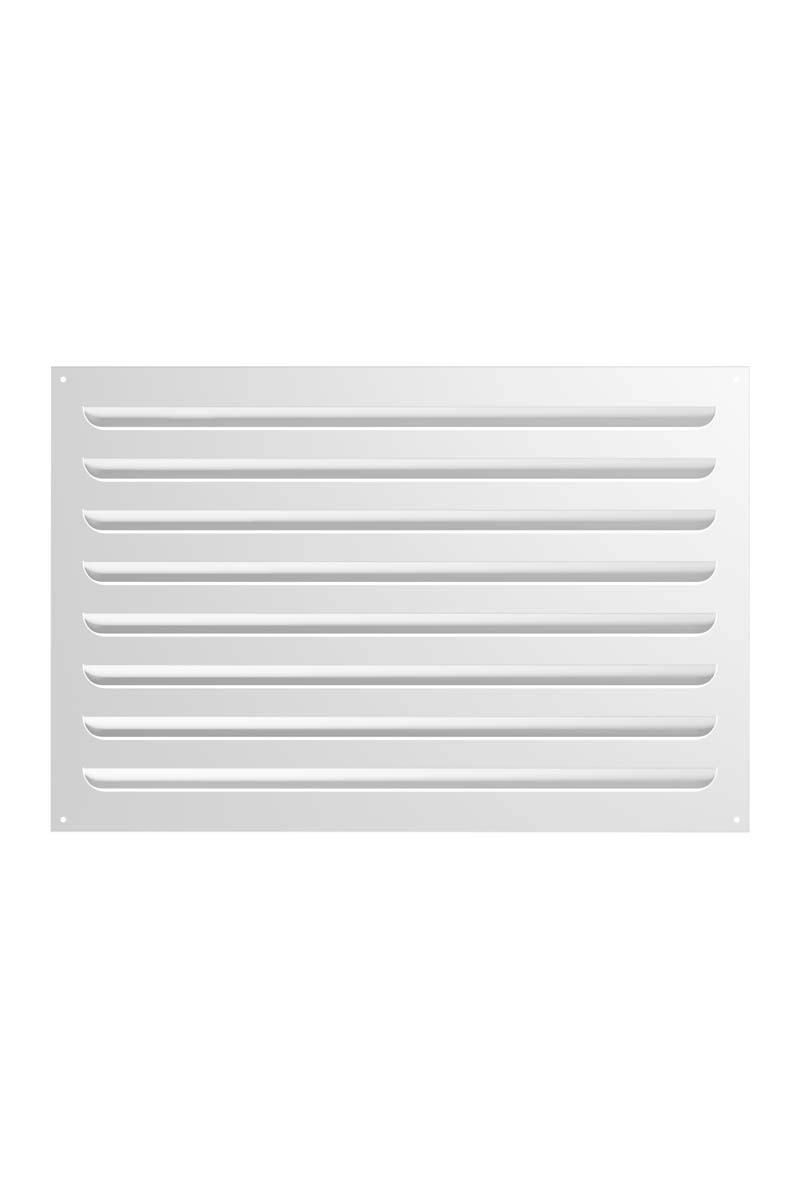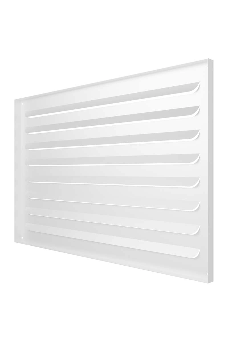 This exhaust grille with slanted louvers neatly conceals the ventilation duct. It is secured using self-tapping screws, which ensures reliable fixation and simplifies the installation process.