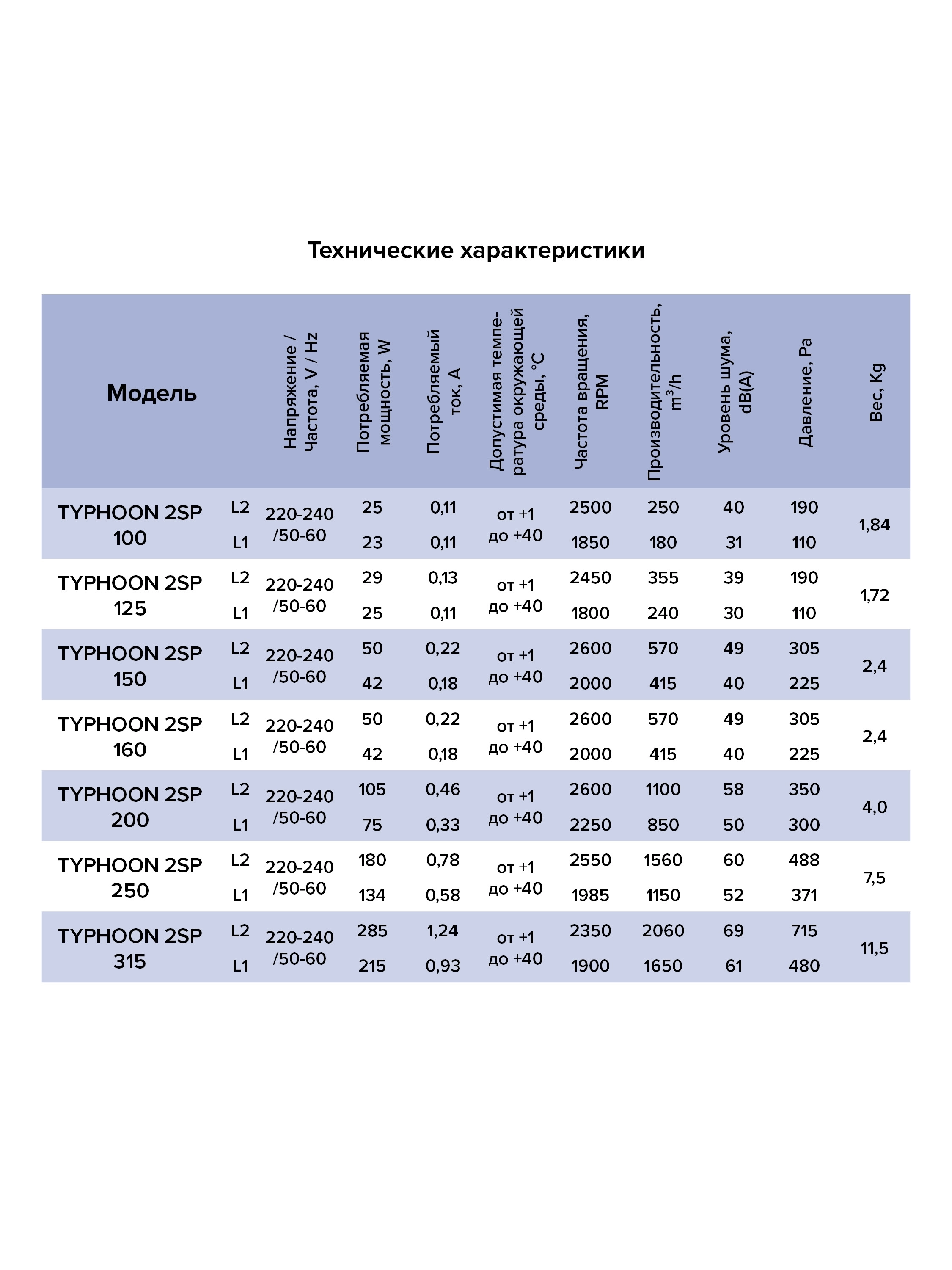 • Performance max, m3/h 250